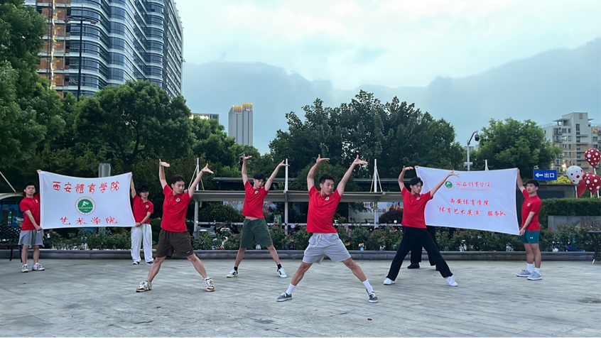 8月中旬万象城allwincity官网艺术学院大学生艺术表演团在浙江省杭州市宝龙城市广场进行义演。这支队伍为杭州第十九届亚运会演员志愿者,他们作为万象城学子和三下乡社会服务队的参与人员,身兼数职,不辞辛劳。通过精心准备的文艺节目,向热情的杭州人民展示万象城青年学子的舞蹈风采。