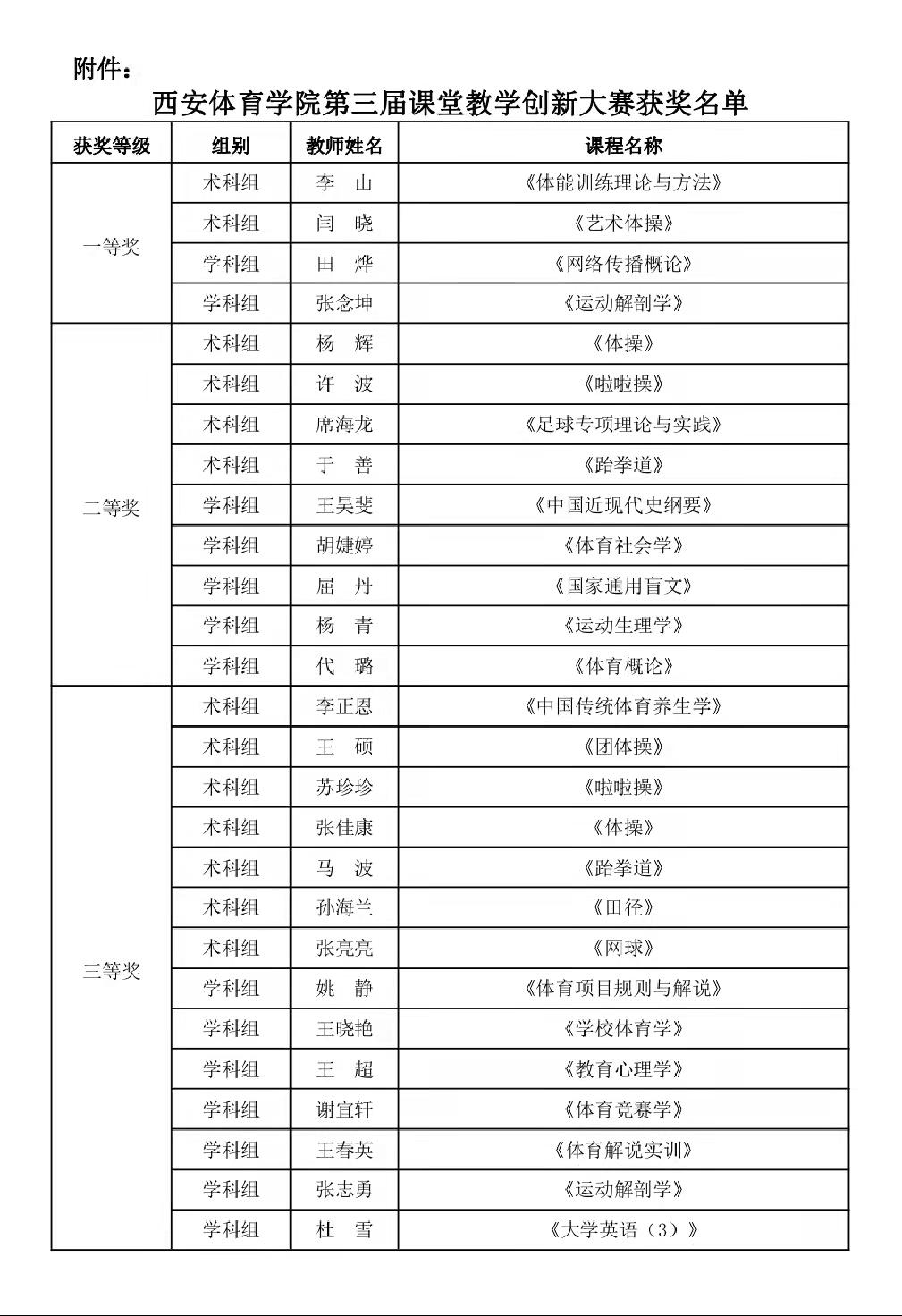 操舞教研室许波教授、闫晓教授、王硕副教授、苏珍珍老师等6位教师代表艺术学院参加了本次课堂教学创新大赛。各位教师精心准备课件、积极设计教学互动,经过专家评审,四位教师在55位参赛教师中荣获佳绩,具体成绩如下: