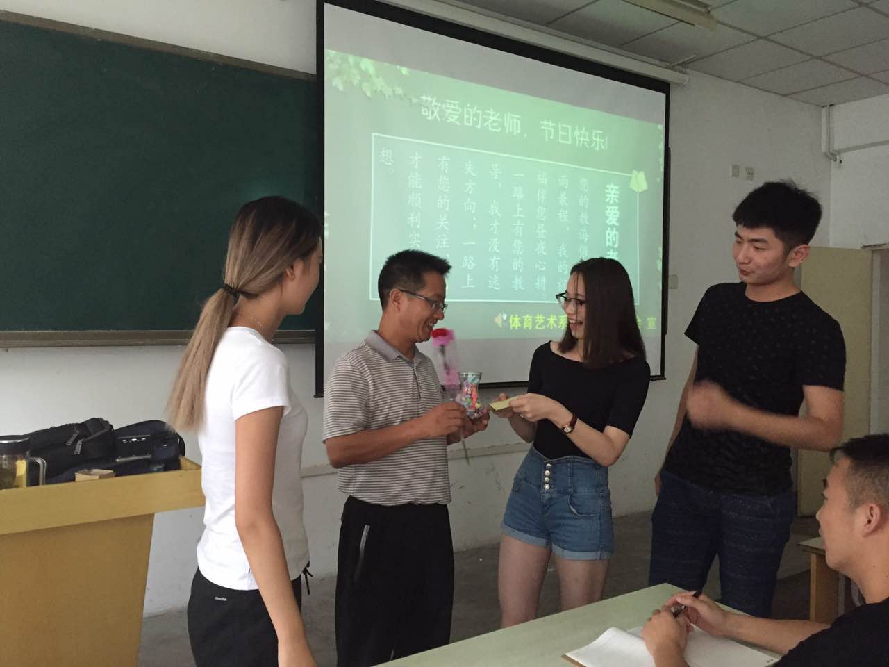 九月的秋风送来阵阵清爽,九月的阳光捧上热情的祝福,在教师节即将来临之际,体育艺术系2014级学生分会组织同学们表达了对老师们节日的祝福。
