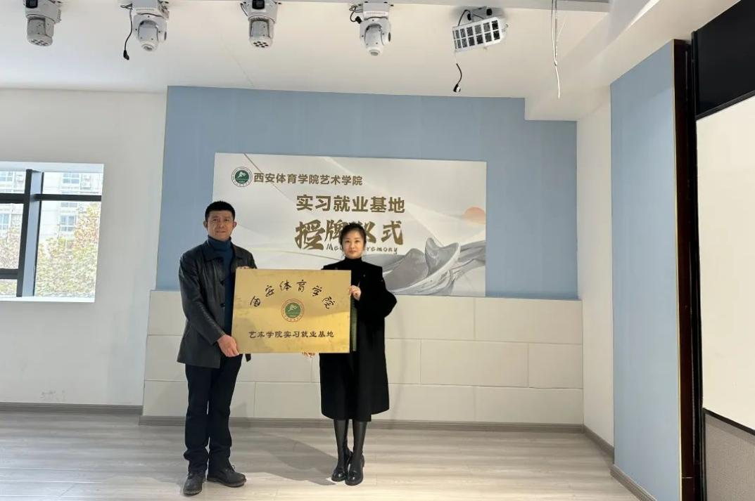 2023年11月13日,艺术学院与汉中市汉台区菲琳格娜艺术培训学校举行了实习就业基地签约授牌仪式。艺术学院院长杨占军、艺术学院2020级辅导员时欢与菲琳格娜艺术培训学校杨婕校长共同出席了此次授牌仪式。