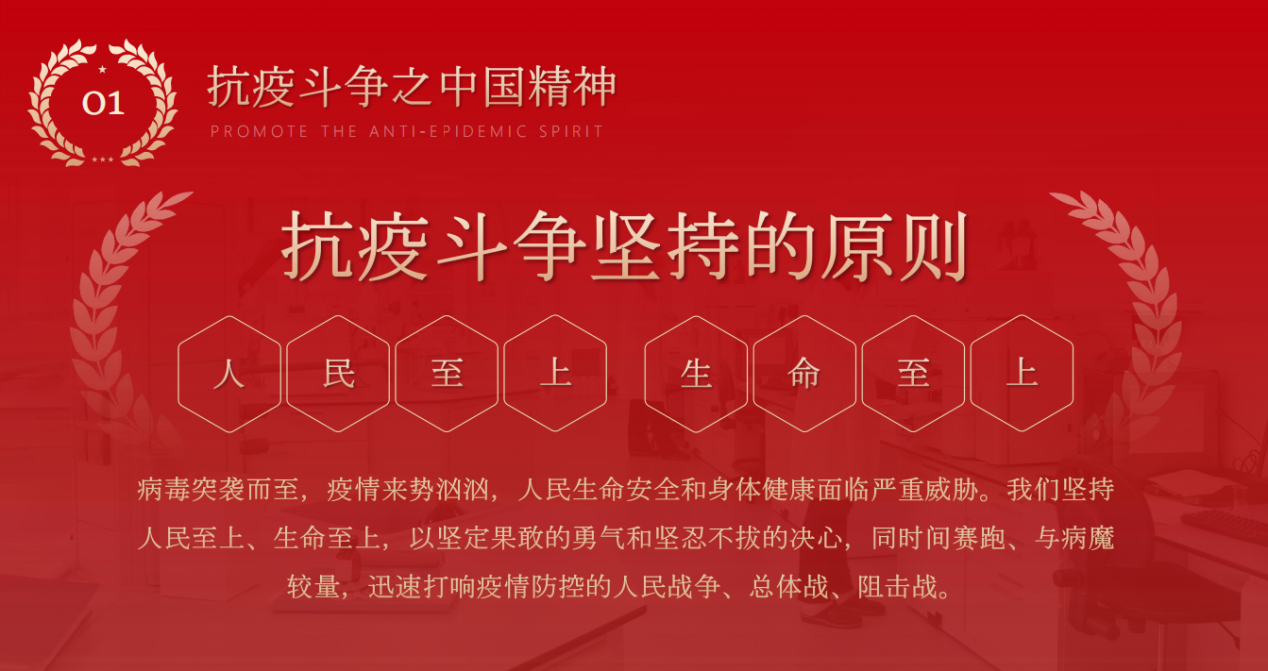 会议第二项,由党员教师吕默同志带领全体教师学习了中国精神谱系中“抗疫精神”的相关内容。