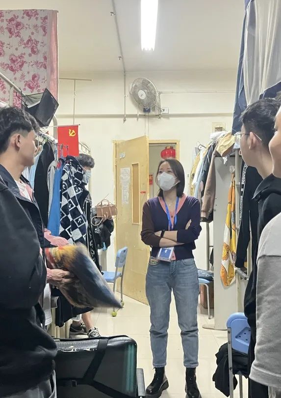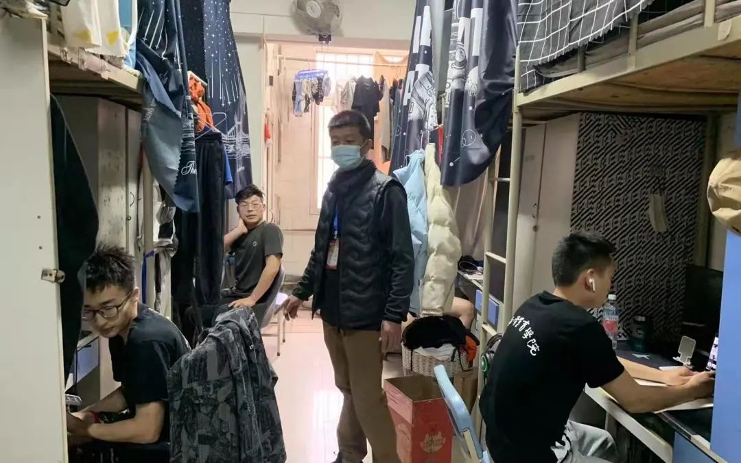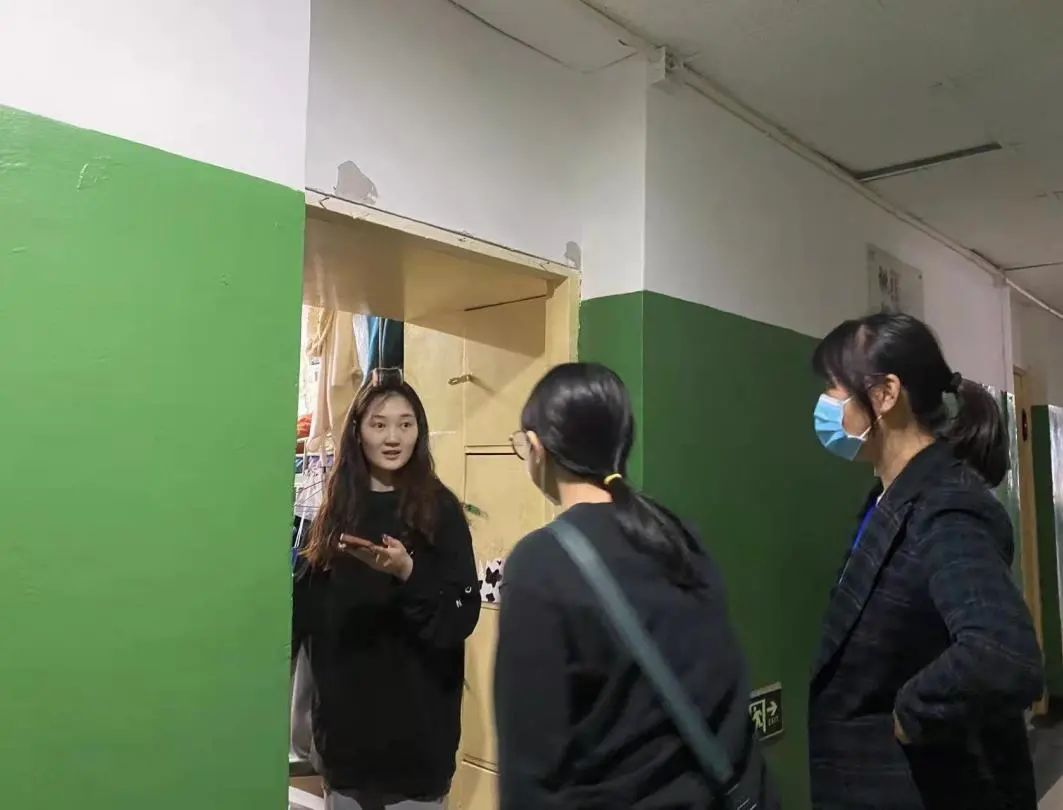为落实线上网课教学的有序进行,深度了解同学们对于网课的真实反馈,艺术学院党委书记丁雪艳、院长杨占军及学工办辅导员前往学生宿舍询问同学们近期的学习以及生活情况。在询问的过程中,老师们提醒学生要注意做好常态化防护,并且要合理规划课程学习的时间。