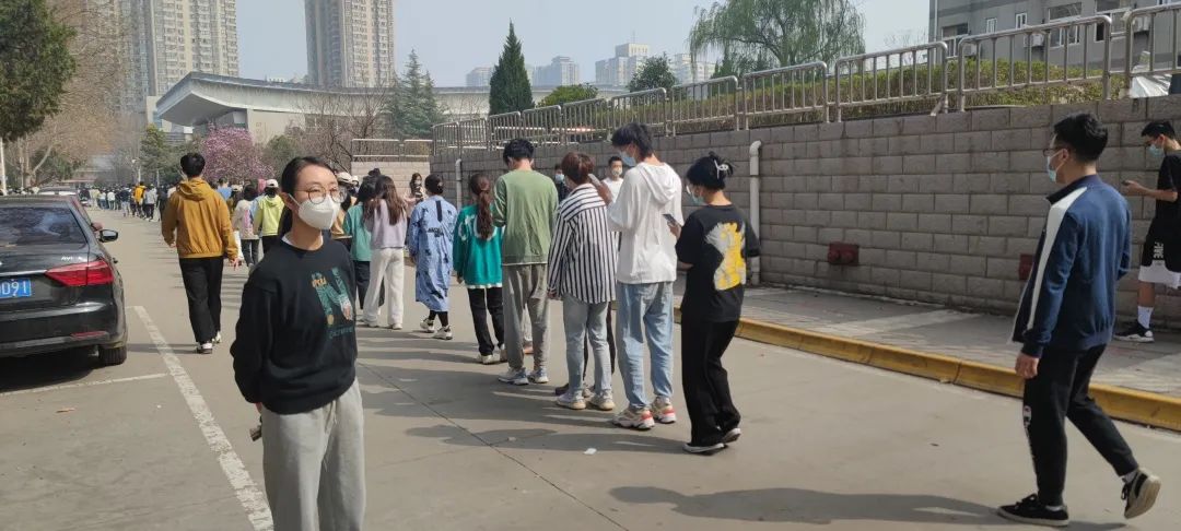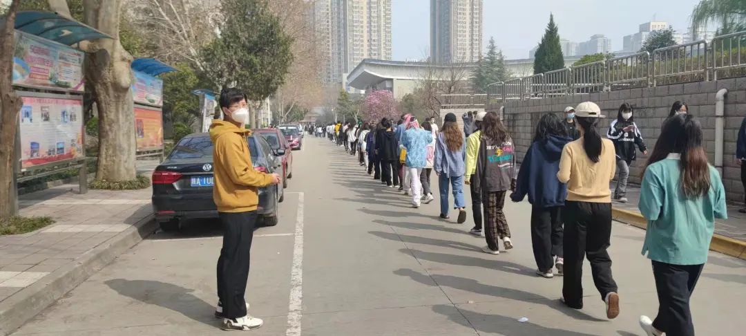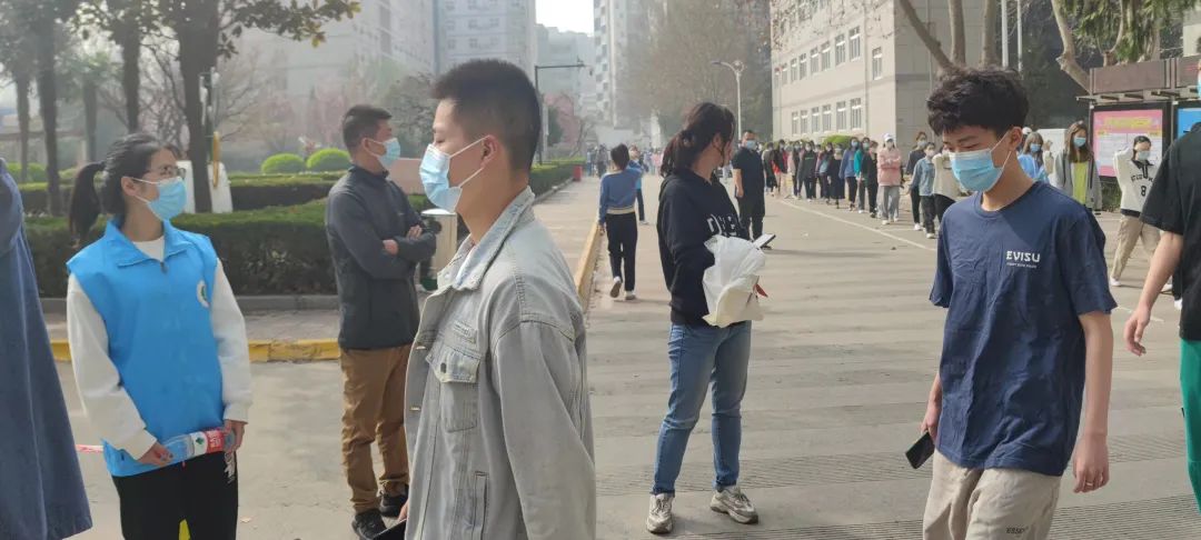 在核酸检测过程中引导学生们配合核酸工作者们,并要求保持一米距离,戴好口罩、不聚集不扎堆、树立健康理念、做好个人防护,做好疫情防控工作,确保疫情排查“不漏任何人”,用责任与担当筑起了一道坚实的防线。