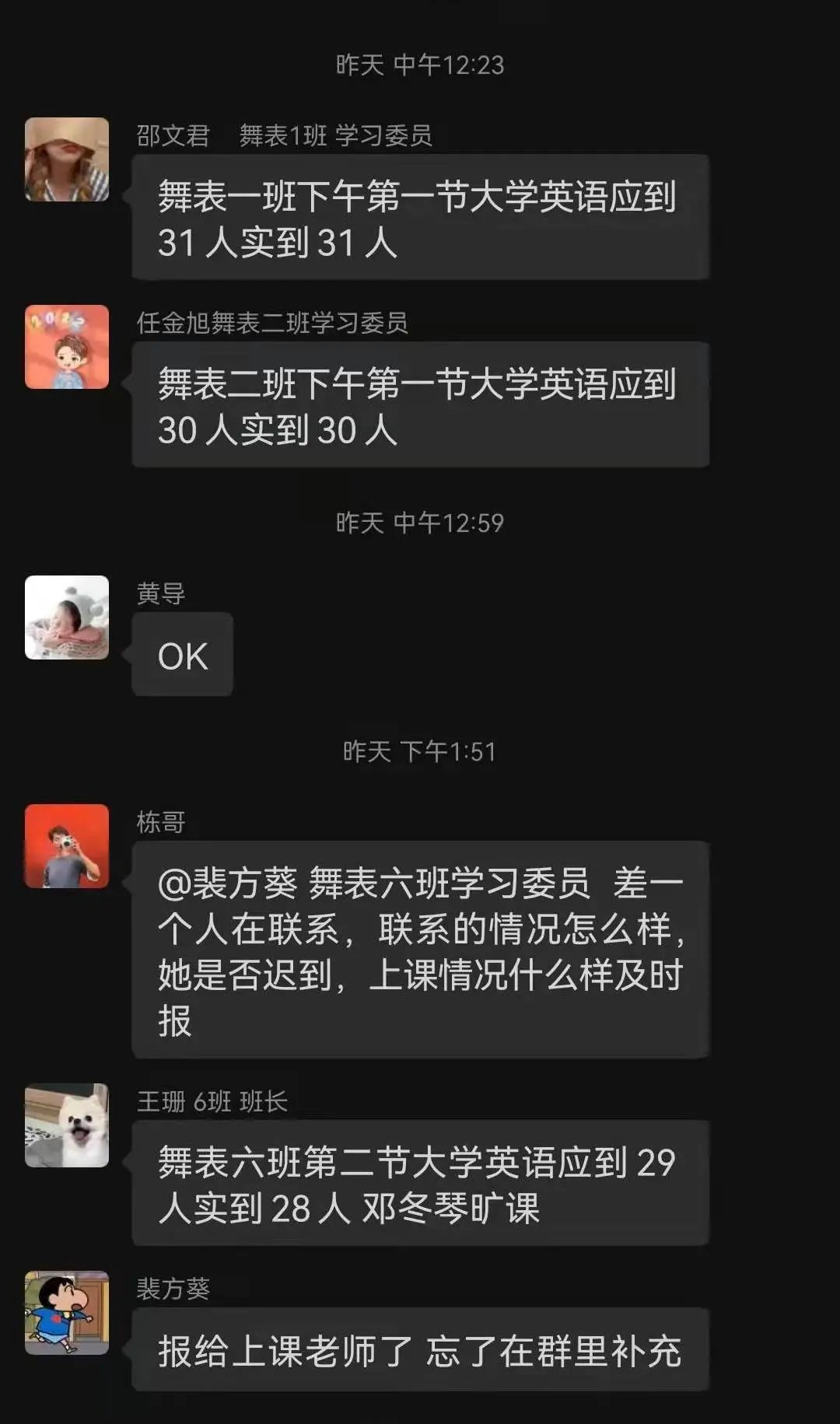 各年级辅导员及时督促班委课前查人,并提出了具体要求:
