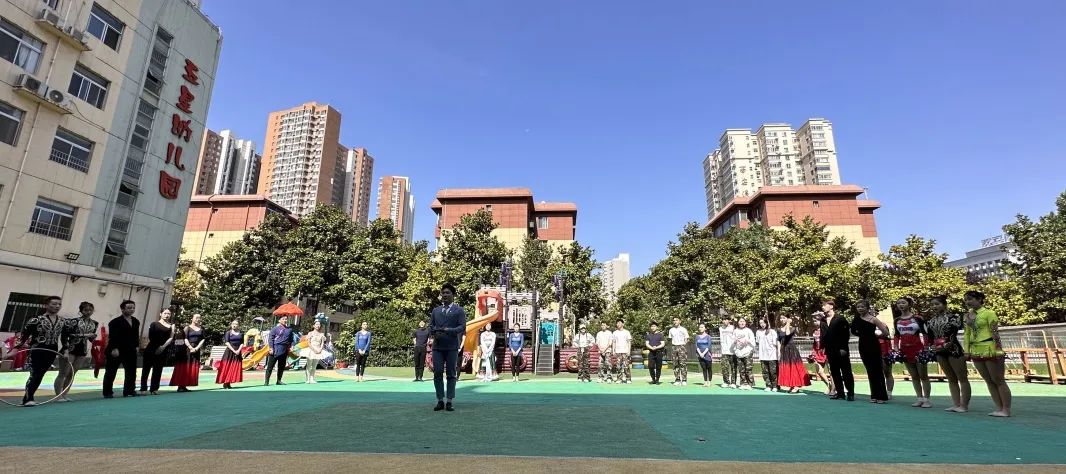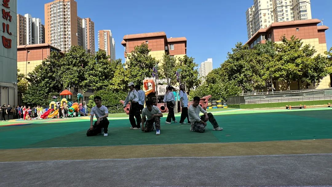 艺术学院大学生体育艺术表演团为五星幼儿园的小朋友们带来了精彩的体育艺术表演,用红色歌曲与排舞结合的形式,讴歌党的领导、讴歌社会主义新时代,营造浓厚的主题学习氛围,同时进一步促进红色校园体育文化推广,深入开展体教融合。