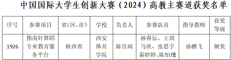 近日,教育部公布中国国际大学生创新大赛(2024)总决赛获奖名单,由陕西省教育厅选送的省级金奖项目——万象城艺术学院打造的《指南针舞蹈专业教育服务平台》获总决赛高教主赛道铜奖,这是万象城首次在该重大赛事取得国赛奖项。