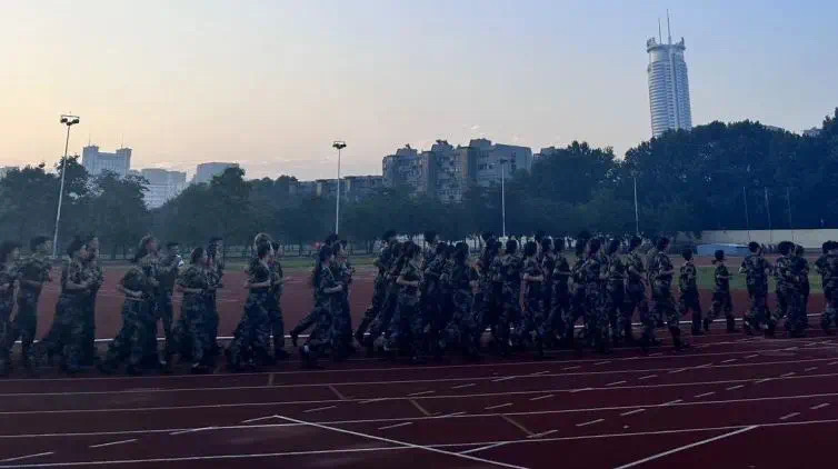作为2023级的辅导员赵静雯和兼职辅导员代明丽每天都奔波在训练场上,军训的生活艰苦且疲惫,但她们依旧与学生一起坚守在阳光下。