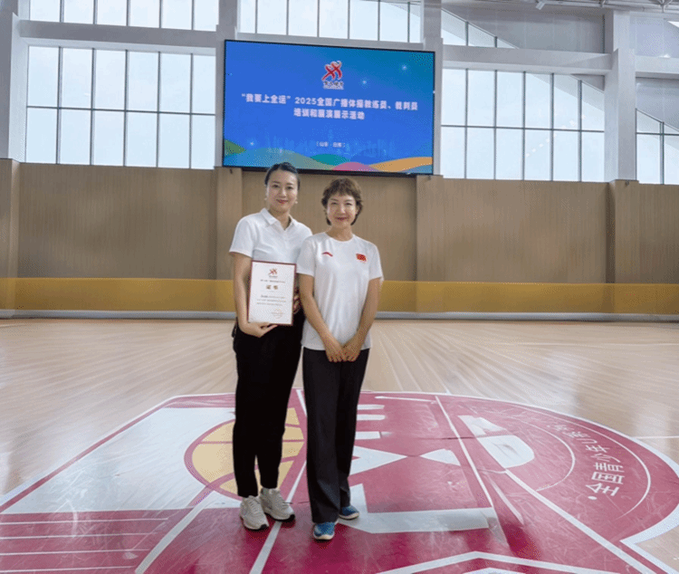 唐甜甜老师也于6月24-26日参加日照举办的全国广播操教练员、裁判员培训。此次培训,旨在提升广播体操教学与训练水平,为全运会群众赛事储备专业力量。唐老师在培训中积极交流、汲取经验,将把所学知识带回,助力陕西省全运会广播体操项目备战工作,也为校园及社会层面推广规范广播体操注入活力。
