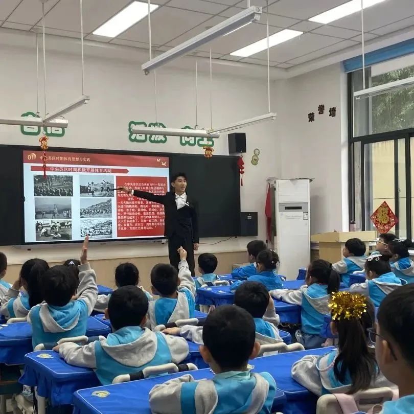 我院学子通过寓教于乐的方式,让红色体育薪火相传,在红色体育文化环境氛围和红色宣讲文化内涵中展现出他们朝气蓬勃、活力四射的良好精神风貌,并引领南湖小学师生形成一心向党、一心为党的情怀。