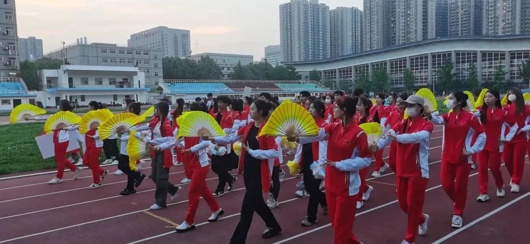 方阵中朝气蓬勃的艺院学子,散发出青春气息,无不展现了艺院学子的朝气与活力。白黄两色的花球高举头顶,黄灿灿的扇子如起伏的波浪是艺院师生继往开来、乘风破浪的勇气与决心。