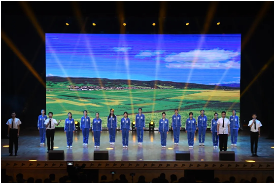 晚会以时间为主线,各二级学院师生深情演绎了在中国共产党带领下,中华民族百折不挠、砥砺前行的民族复兴历史。在体育新闻与传媒学院王瑞、严峰、郭维刚老师指导下,学院三十多位同学承担了主持、情景剧演绎、朗诵、老中青三代感恩致辞、视频制作、视频配音的演出任务,并圆满完成。