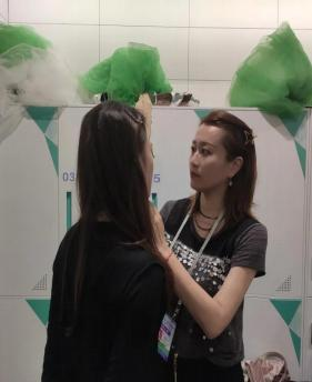 (谭博老师、唐甜甜老师为演出学生整理妆容)