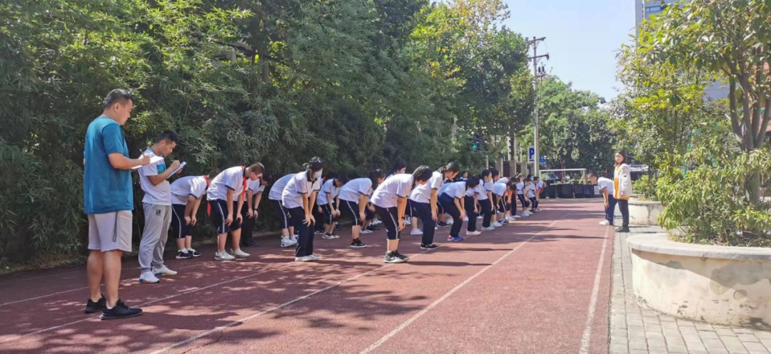 西安第六中学实习老师针对高一高二年级进行自编校园广播体操,首先,先给其他实习老师教,在教的过程中一起探讨、研究,从中找出问题并及时调整改编,最后通过各个实习老师再给自己所带的班级教学!