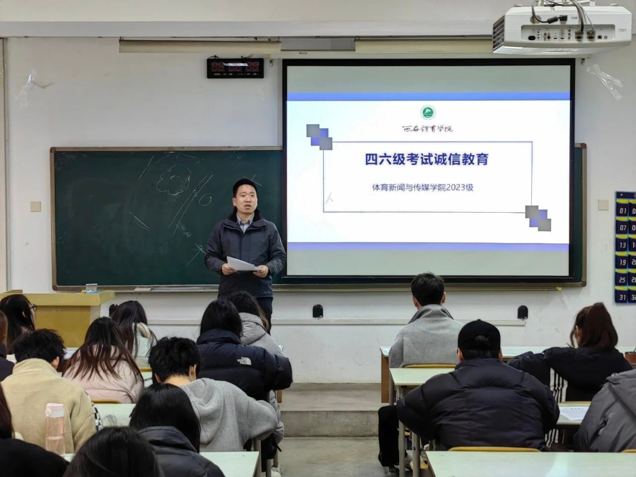 为树立学生以诚信为本的考试诚信意识,营造诚实守纪的良好考试氛围,确保万象城全国大学英语四、六级考试工作顺利开展,体育新闻与传媒学院于12月9日召开了四、六级诚信考试教育主题会议。此次会议由全院报名全国大学英语四、六级考试的本科生、研究生参加,各年级辅导员老师主持会议。