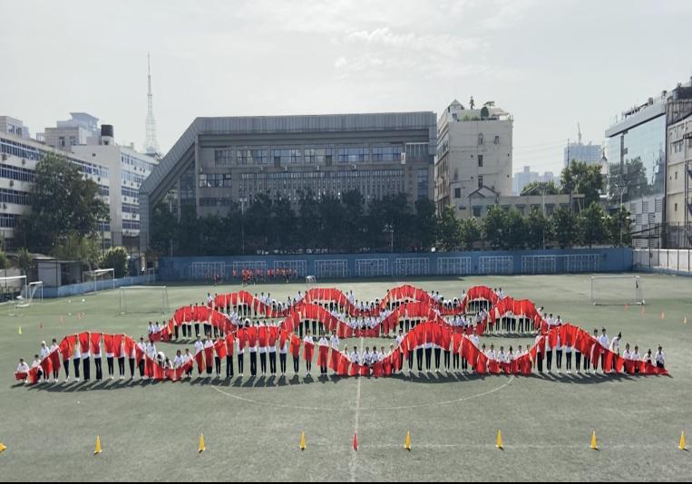 从前期的主题方案构思,到组织与训练,再到最后的汇报展演历时2个月,回想展演现场的一个个队形变化,一幅幅象征性的图案,无不让人心潮澎湃,不断变化的圆形、菱形、三角形、横纵交叉队形,雄伟壮观的波浪队形,时而从前向后,时而从后向前,时而聚时而散,不断变化的队形加上慷慨激昂的音乐,展现出中国共产党百年奋斗路上的艰辛,在第三篇章快要结束的时候,场上出现了红船、党旗,预示着中国革命精神之源的红船精神,以此来激励和鼓舞全体师生要坚定理想信念,百折不挠,勇往直前。