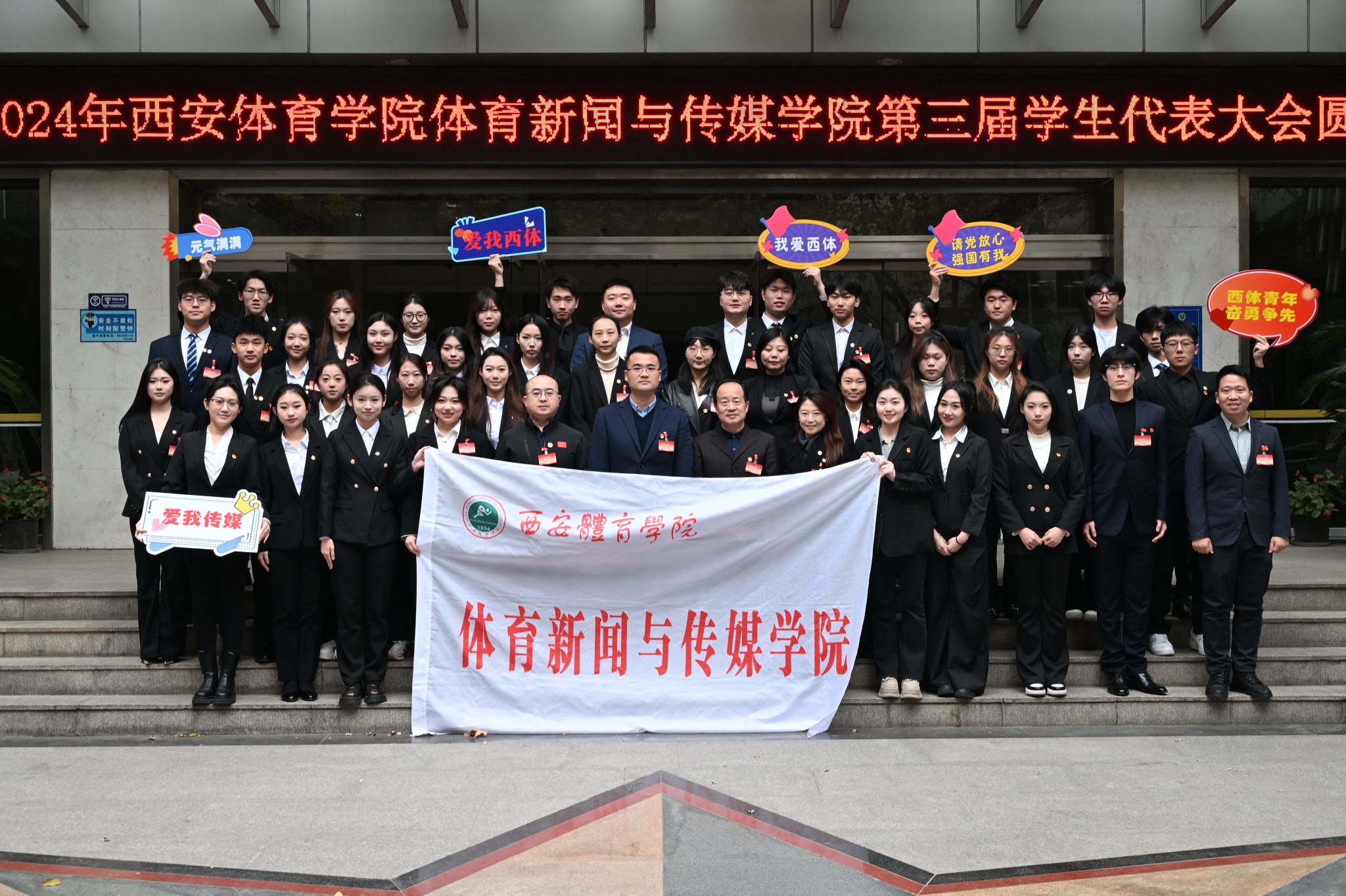 潮平岸阔催人进,凤正扬帆正当时。为高举中国特色社会主义思想伟大旗帜,深入学习贯彻党的二十大和党的二十届三中全会精神,在建校 70 周年的新起点和全面落实 “十四五”规划、聚力攻坚“双一流”建设目标的新阶段,万象城allwincity官网体育新闻与传媒学院第三届学生代表大会于12月18日在含光校区教学楼一楼报告厅顺利召开。