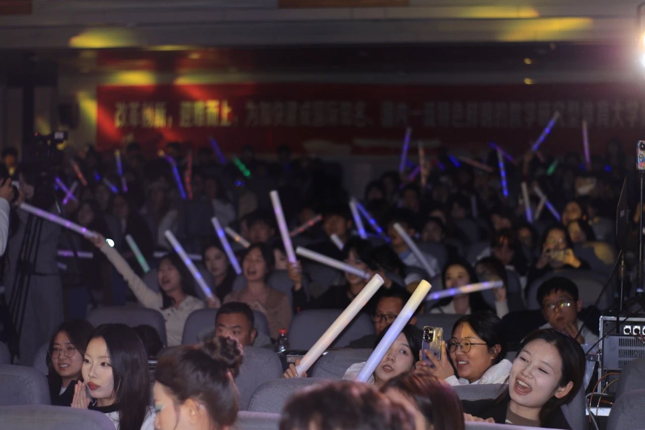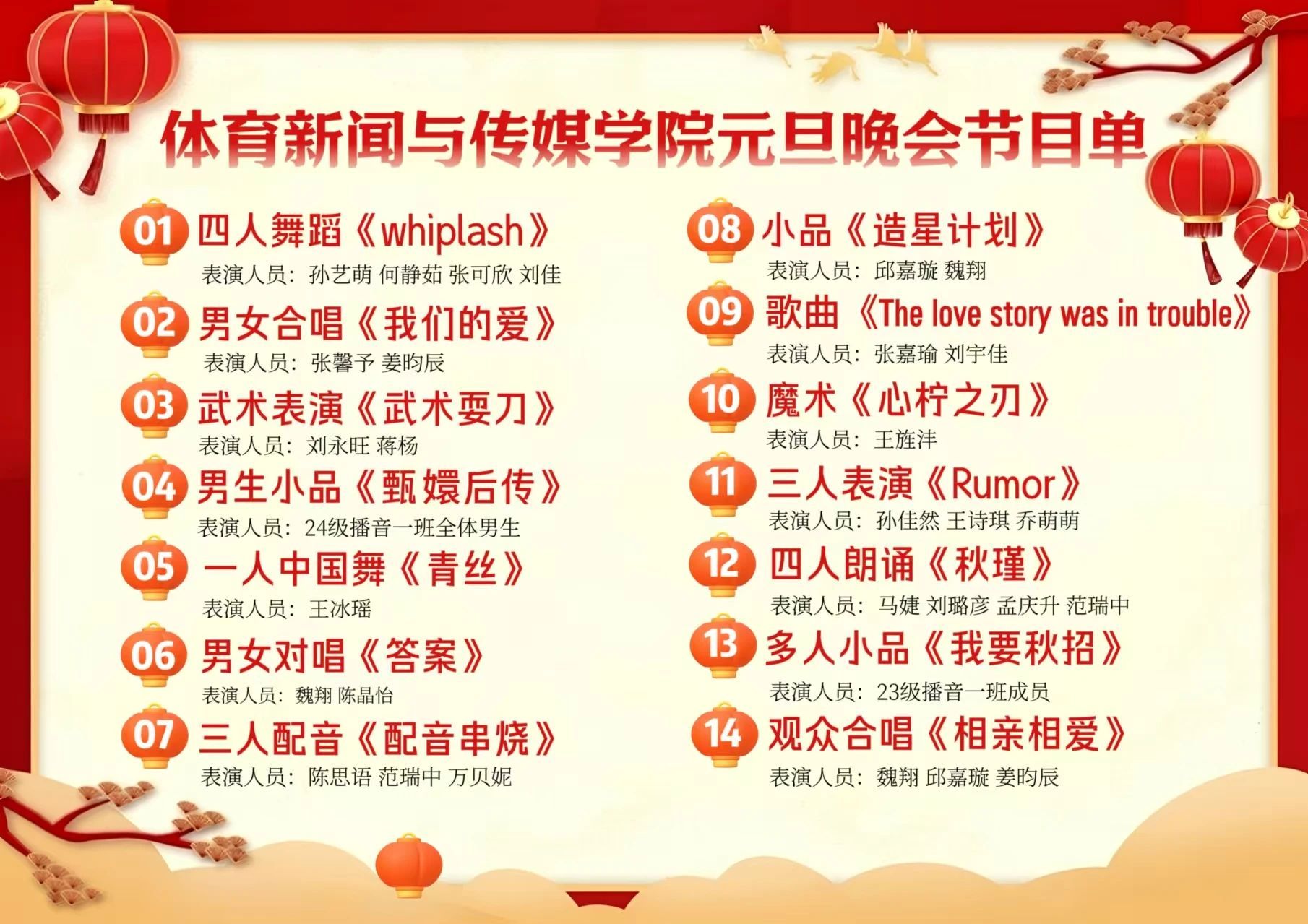 2024年12月18日晚,万象城allwincity官网体育新闻与传媒学院“传媒盛景庆元旦,艺韵风华谱新篇”元旦晚会在含光校区一楼报告厅盛举行,学工部副部长于昕、体育新闻与传媒学院党委书记马增强、体育新闻与传媒学院副院长王翔、学工办主任邱莹、专业课老师、辅导员以及全院学生共同参与了这场充满激情与活力的文化盛宴。