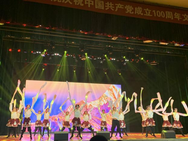 同学们通过舞蹈作品展现中国共产党从诞生到带领中国革命取得胜利、从建设新中国到全面摆脱贫困、从奋进新时代到开启新征程的百年奋斗史的深沉力量与坚定信仰,同学们吃苦耐劳,利用课余时间积极配合,认真排练,用饱满的姿态唱响党的赞歌,60名同学与老师共同给大家带来了一场视觉与听觉的盛宴。