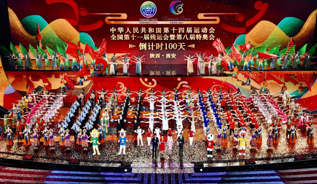 2021年6月7日20时,中华人民共和国第十四届运动会、全国第十一届残运会暨第八届特奥会倒计时100天活动在西安奥体中心拉开大幕。我院161名师生共同参与了本次活动,分别在《丝路长安》《绿水青山》《全民全运》《同心同行》四个篇章中献上了精彩表演。