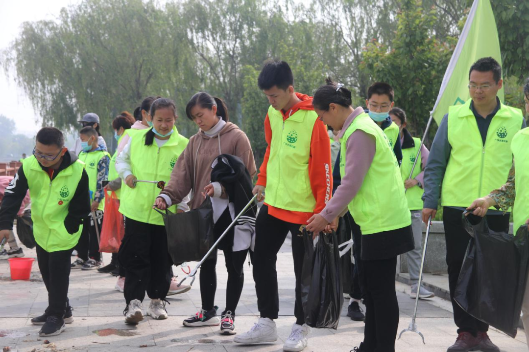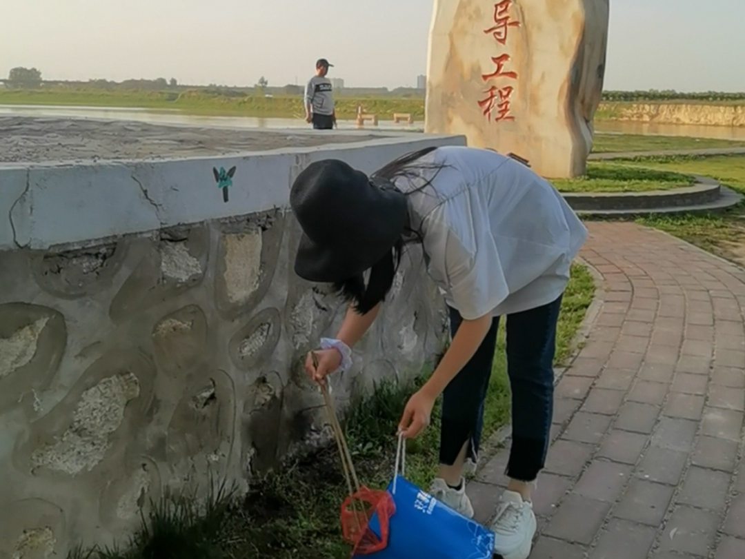 在河提公园捡拾垃圾,不仅美化环境保护水源,也警醒前来游玩的人们不乱扔垃圾,我院师生用实际行动为构建美好社会生活出一份微薄之力。