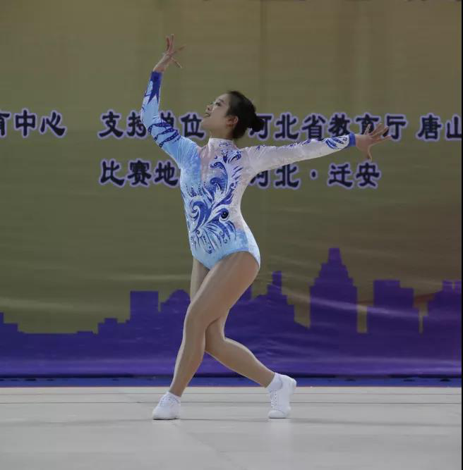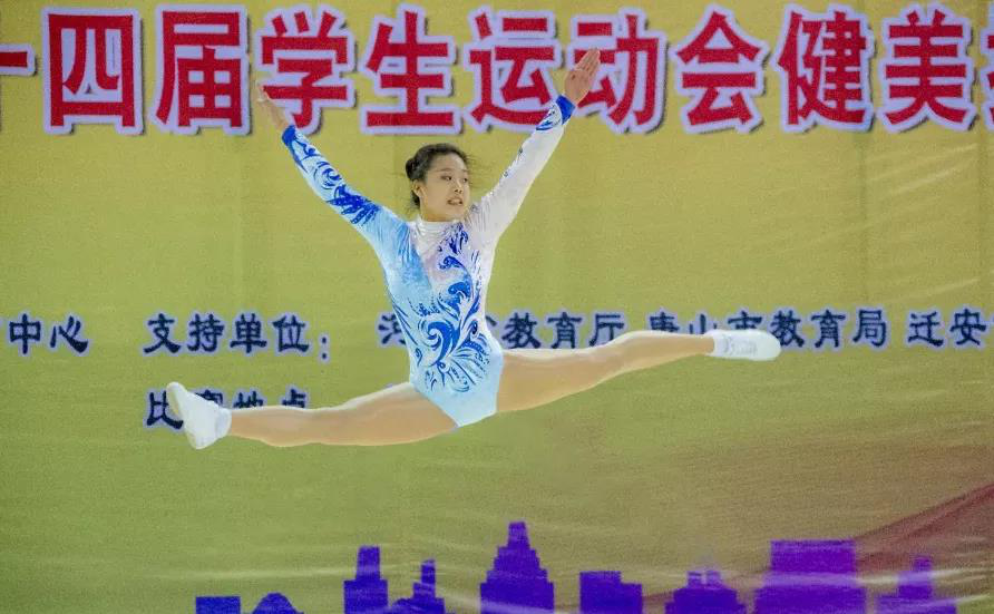运动员们身着艳丽的服装,伴随着音乐节拍,用高难度的动作、靓丽的舞姿,充分展现了当代大、中学生青春激扬和奋发向上的精神面貌。