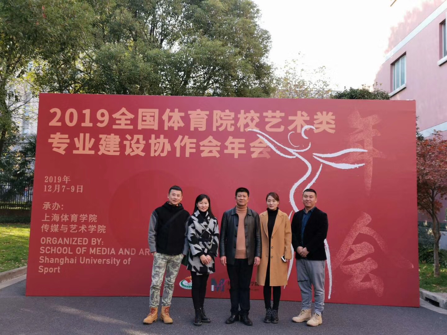 2019年全国体育院校艺术类专业建设协作会年会12月8日在上海召开,艺术学院院长杨占军、副院长刘强、教研室支部书记郭伟、娄山、张馨蕾以及教学秘书时欢参加了此次年会,此次协作会年会召开对体育院校艺术类专业建设具有重要意义。