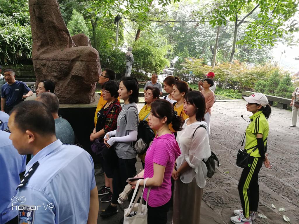 大家先后来到渣滓洞、白公馆、解放碑、烈士陵园等地,一幅幅照片和实物将大家带回到那个白色恐怖、血雨腥风的年代,再现了先烈们追求进步、坚定信念、不怕困难、不畏艰险、勇于献身的革命精神。党员们认真驻足观看,仔细倾听讲解,心灵受到巨大的震撼与洗礼,深深接受了一次革命传统主义教育。面对鲜红党旗,面对革命先烈,党员们举起右拳庄严宣誓,重温入党誓词,牢记党员使命。