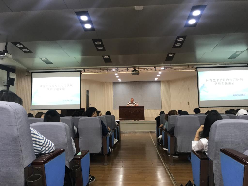 为了进一步规范校内实习,应对当今就业需求,2019年6月5日下午两点在一楼报告厅,体育艺术系邀请体操教研室赵俭教授,进行体育艺术系校内实习队列队形专题讲座。杨占军副主任主持本次讲座,各班实习指导教师,年级辅导员以及2020届全体学生参加了讲座。