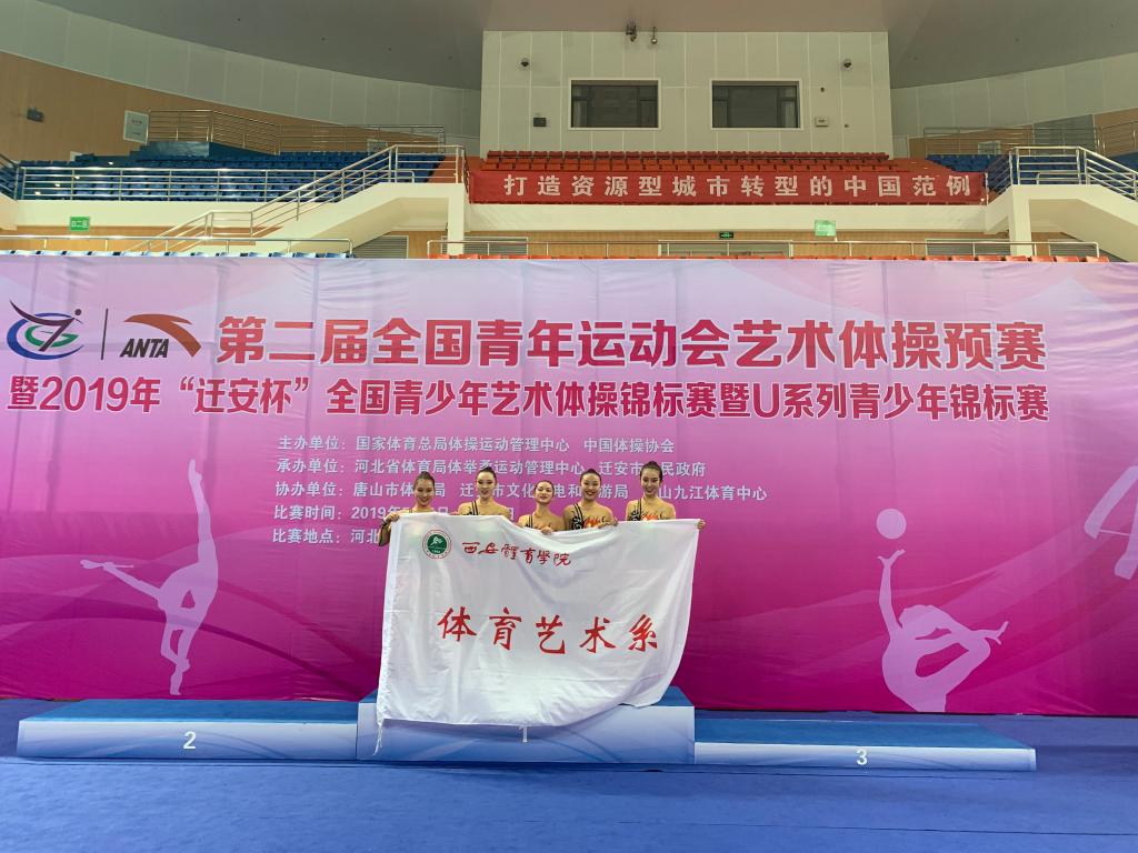 此次参赛队员是从我院研究生部、体育艺术系中选拔出的5名同学,在我院艺术体操队教练闫晓、陆渟两位老师的带领下参加了本次大赛“青年A组“的集体项目比赛。该组共有来自天津体育学院、武汉体育学院、沈阳体育运动学校等16支队伍。在与各路劲旅的激烈角逐中,我院艺体队的姑娘们顶住强大的压力,在比赛中出色的完成了整套动作的表演,赢得了裁判们的一致认可, 最终取得了集体一级动作全能第三名的优异成绩,同时5名队员获得国家一级运动员的称号!