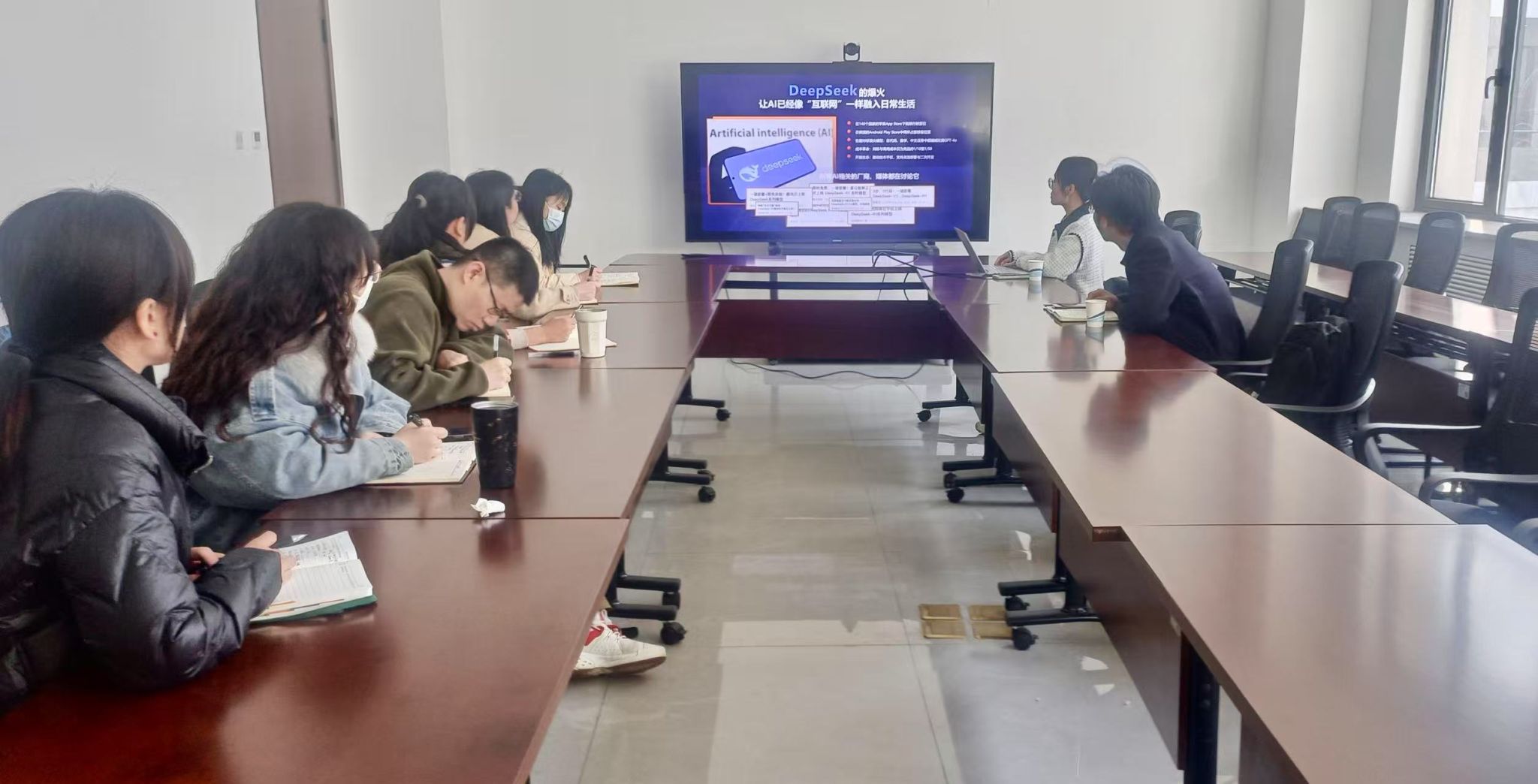 交流会上,技术专家详细介绍了人工智能技术在高校的最新应用成果,包括智能问答、AI内容创作、语音播报、智讯大平台、企业微信智能应用等内容,讲解了AI技术在西安交通大学、山东大学、西安建筑科技大学等高等院校的成功案例。