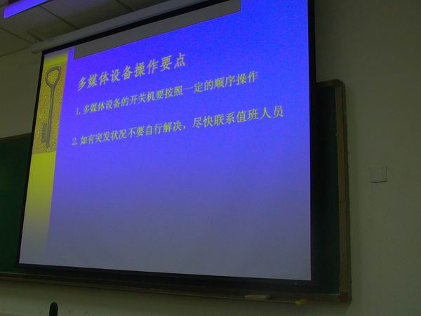 为了保证我院多媒体教学设备的正常使用,针对本学期新增多媒体教学设备尤其书写屏功能的应用,现代教育技术与网络信息中心于2009年8月29日、30日在新教学楼105多媒体教室对我院教师进行多媒体教学设备使用培训,培训反应良好,教师学习气氛热烈。