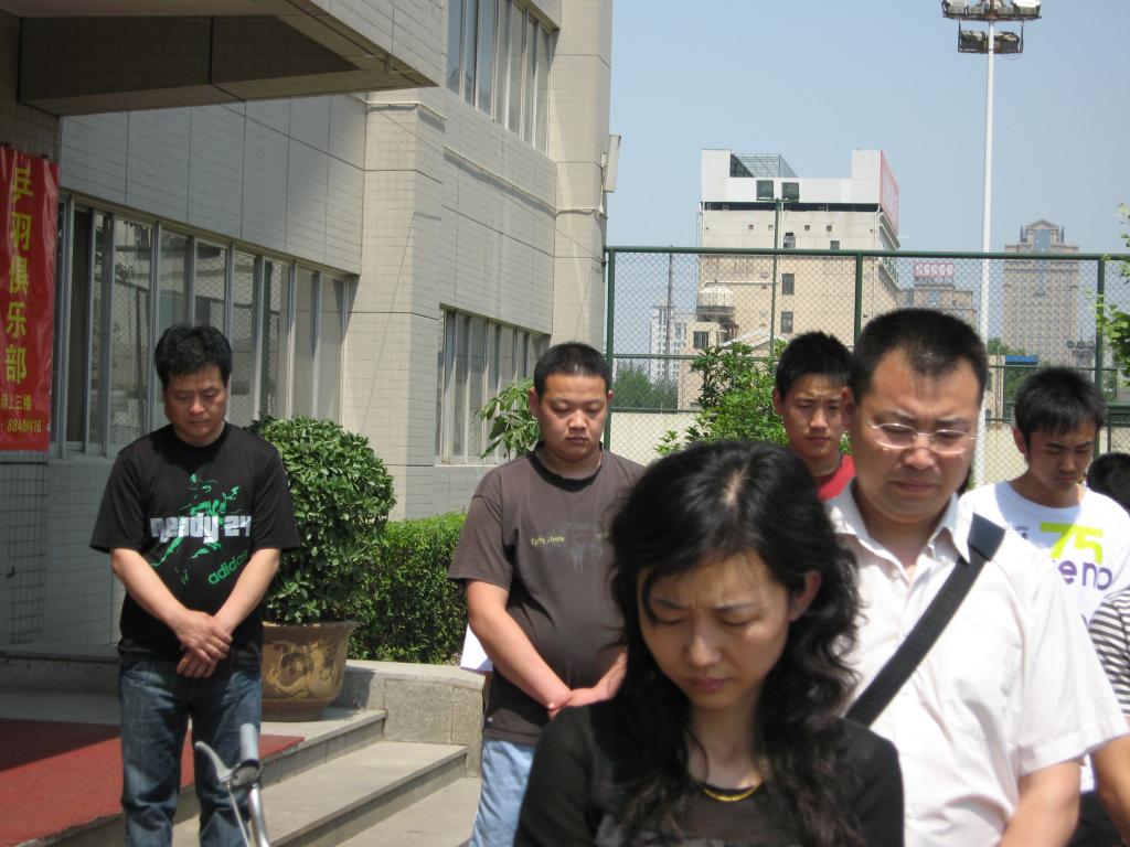 为了表示对地震灾区遇难同胞的深切哀悼,2008年5月19日14时28分,国旗低垂,汽笛长鸣,举国哀悼。西安体院武术系全体师生也集体默哀3分钟,以表达我们对遇难同胞的哀悼,愿逝者安息,生者坚强。