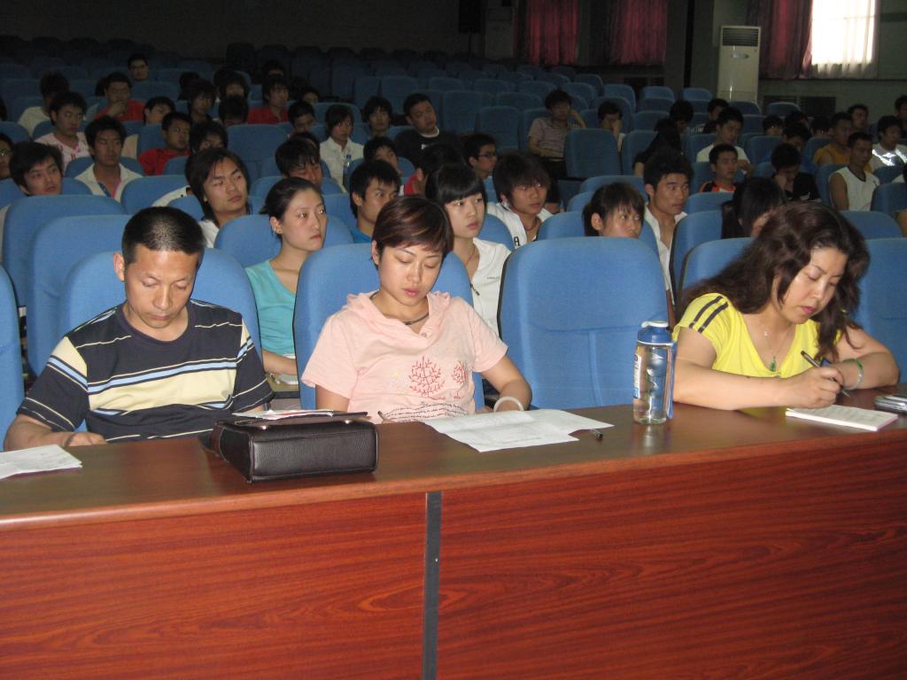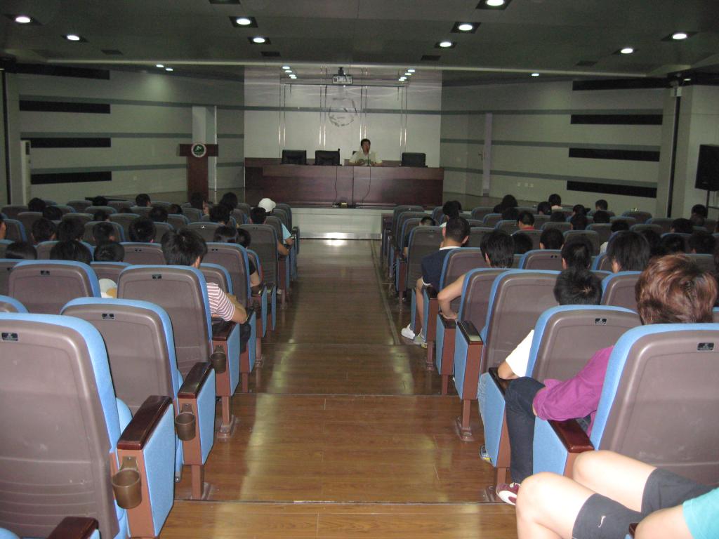 2008年5月7日下午2点半,武术系在教学一楼报告厅召开了武术系05级学生教育实习动员会,参加动员会的有武术系教学秘书、张念坤、套路教研室主任徐瑛副教授和套路教研室教师王怡副教授、散打教研室支部书记唐军老师及05级年级辅导员王华以及05级全体学生。