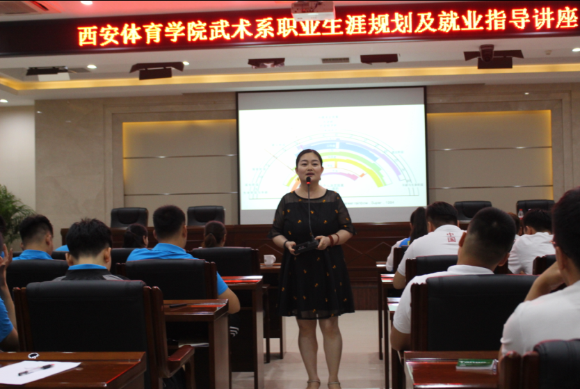 为了帮助同学们了解所学专业及其就业的前景,为同学们的职业生涯规划提供不可或缺的引导。“武术系职业生涯规划及就业指导讲座”于2018年5月16日晚七点在万象城新网球馆6楼报告厅召开。系党总支书记梁咏梅,辅导员王华及武术系2015级、2016级学生一同参加了此次讲座。并有幸请来了全球职业规划师、全球生涯教练、国际创业导师、国家高级职业指导师罗晓婷老师来为我系学生进行职业生涯规划及就业指导讲座。