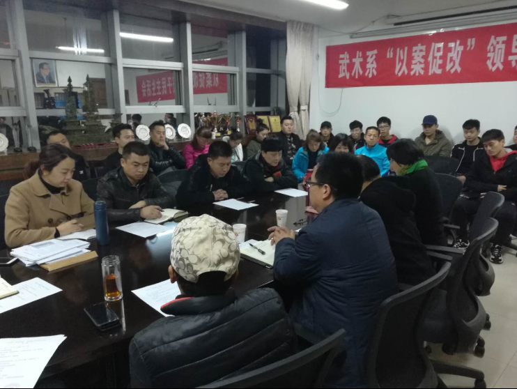 为全面贯彻落实从严治党,扎实推进“以案促改”工作,武术系党总支于11月8日晚在系会议室举行了领导班子“以案促改”专题民主生活会。副院长李富生、纪委副书记缑荣涛同志应邀出席,武术系全体党员、干部参加了会议。
