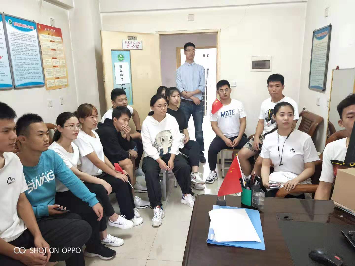 组织参加升国旗仪式、观看庆祝中华人民共和国成立70周年大会活动,是武术学院全面贯彻落实习近平新时代中国特色社会主义思想和党的十九大精神的重要举措,也是武术学院践行“不忘初心,牢记使命”主题教育、爱国主义教育、理想信念教育、革命传统教育的具体体现。