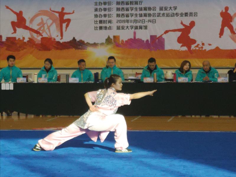 11月12日,由陕西省教育厅主办,陕西省学生体育协会、延安大学承办,陕西省学生体育协会武术运动专业委员会协办的 “2019年陕西省大学生武术套路锦标赛” 在延安大学体育馆拉开帷幕。