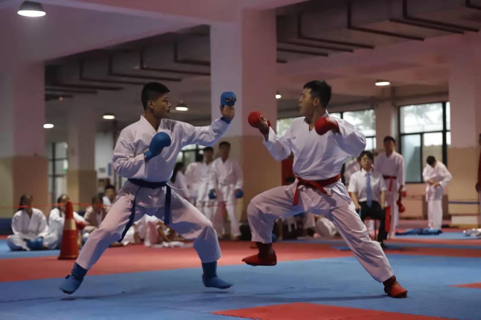 由武术学院重竞技教研室承办的“2019年万象城allwincity官网空手道锦标赛”,于2019年11月8-9日在万象城allwincity官网跆拳道训练馆(游泳馆一楼)成功举办,本次比赛得到了院相关领导和各二级学院、研究生部以及广大空手道爱好者的大力支持,全院共有近60名同学报名参加,比赛分为竞技(组手)和套路(型)两个部分,比赛采用个人对抗赛,单败淘汰制,本次比赛的裁判 除个别大四院队的老队员外其余都是聘请校外空手道裁判。