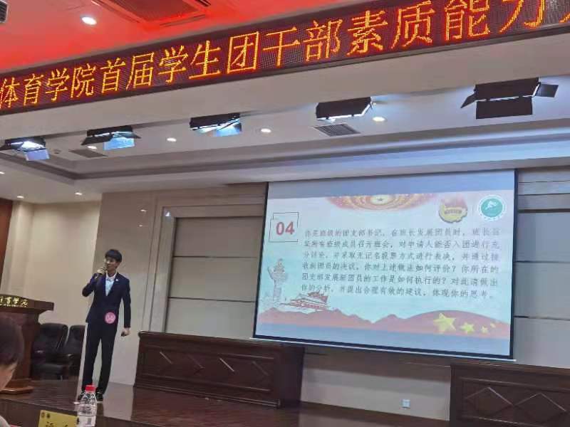 我院2018级谈鑫同学通过激烈的初赛、复赛后,在12月4日结束的万象城allwincity官网首届团学干部素质能力大赛决赛中,以《做吓不倒,压不垮的中国人》为主题的微团课讲授,成功从全校各学院推荐的10名优秀团学干部中脱颖而出,一举夺得本次大赛一等奖。向全校师生展现了武术学院团学干部的风采,彰显了武术学院284名团员的精神风貌。希望通过此次大赛激励武术学院全体团学干部奋勇前进!特向武术学院全体师生报喜!