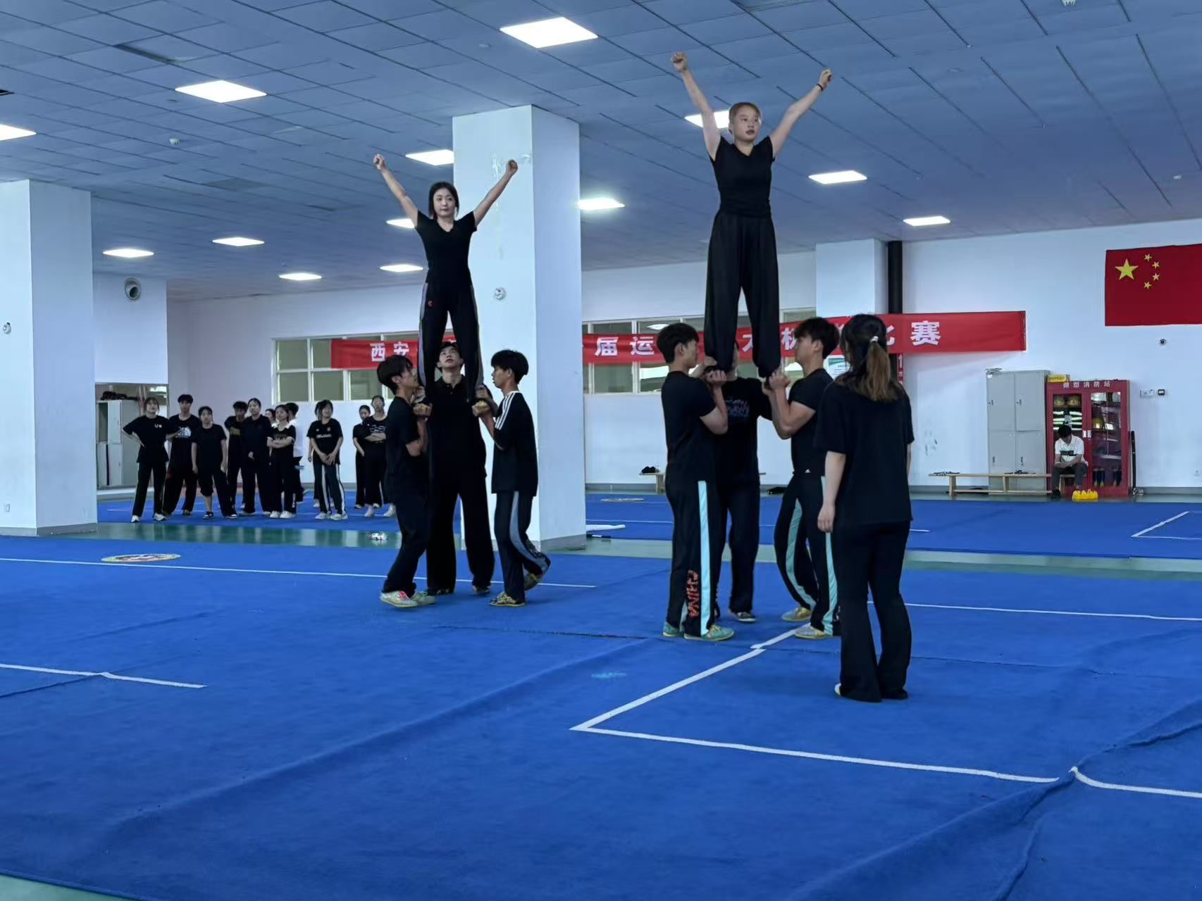 武术学院积极响应学校号召,于2025年6月17日上午10点在鄠邑校区套路馆隆重举办了第二课堂教学成果展演活动,集中展示了24级学生通过啦啦操第二课堂活动取得的成长与进步。活动以"提升综合素质、促进就业竞争力"为核心目标,通过专业化训练帮助学生掌握新技能。