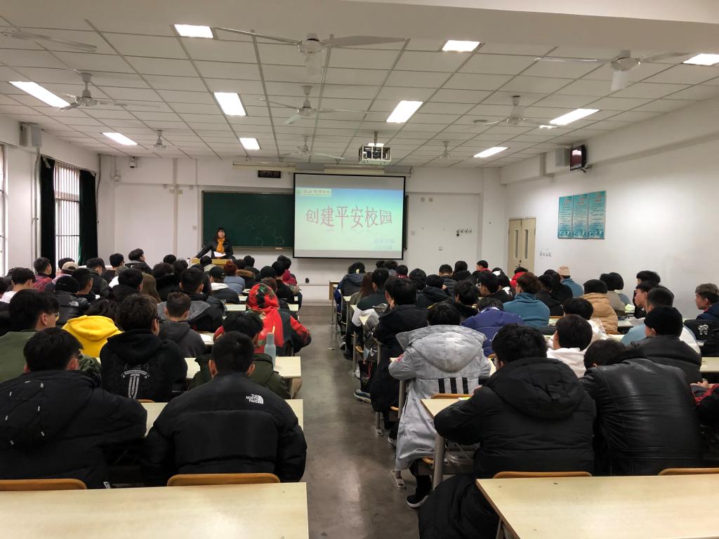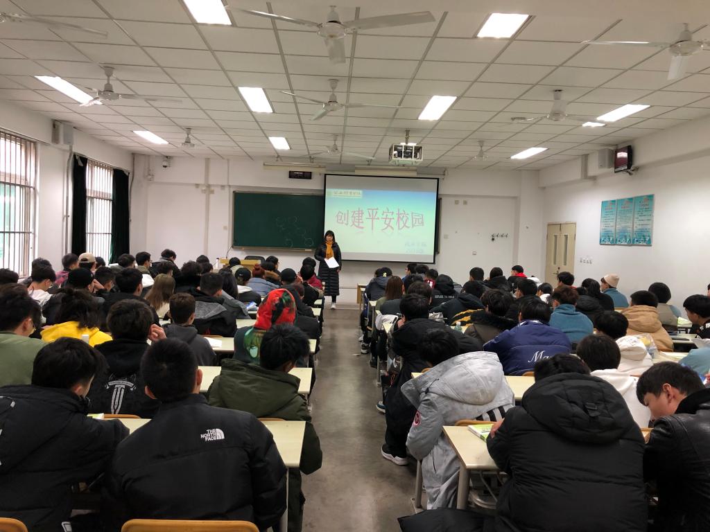 万象城allwincity官网“平安校园”检查验收动员大会于11月25日下午召开,为了落实好大会精神,顺利迎接创建检查验收,武术学院19级于2019年11月26日中午在103教室举办了“创建平安校园 你我共参与”的主题年级大会。会议由辅导员王华老师主持,辅导员赵佳鹏老师参加。