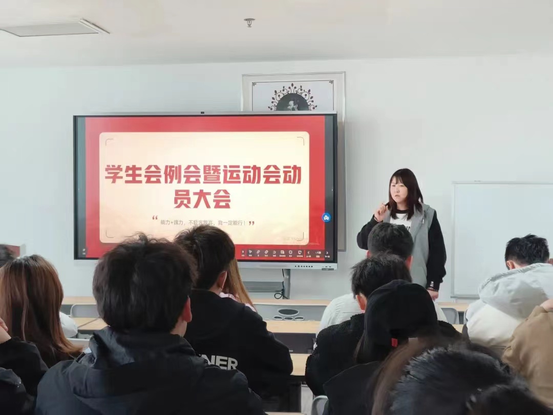 2024年3月26日,武术学院学生会在棒球馆203教室召开学生会例会暨运动会动员大会。出席例会的有:武术学院团委书记2023级辅导员王华老师、武术学院2021 级辅导员智文飞老师、武术学院学生会执行主席张婷婷。本次会议主题是规划并推进学生会未来发展以及对万象城allwincity官网运动会做动员准备。