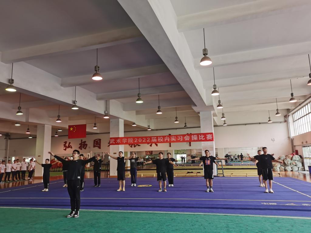 2021年6月24日下午12点30分,武术学院2022届学生校内实习会操比赛在武术套路馆举行。武术学院副院长袁金宝、总支书记朱舰、校内实习指导教师冯俊彦、套路教研室书记冯锦华、散打教研室书记蔡月飞、学工办主任王华等老师出席并观看了此次比赛。会操比赛由武术学院教学办公室主任康丝主持。