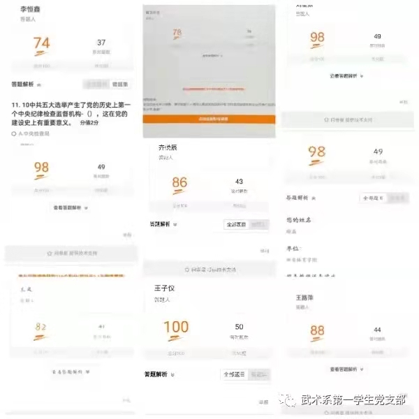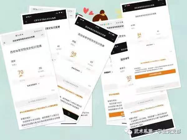 武术学院学生党支部党员参与率达到100%,通过这次党史知识答题让所有党员重温了党的历史,对党的诞生,发展历程,中国共产党初心、使命有了更深入的了解。再一次感受到中国共产党的伟大事业和坚定信念,砥砺前行,昂扬奋进新征程。
