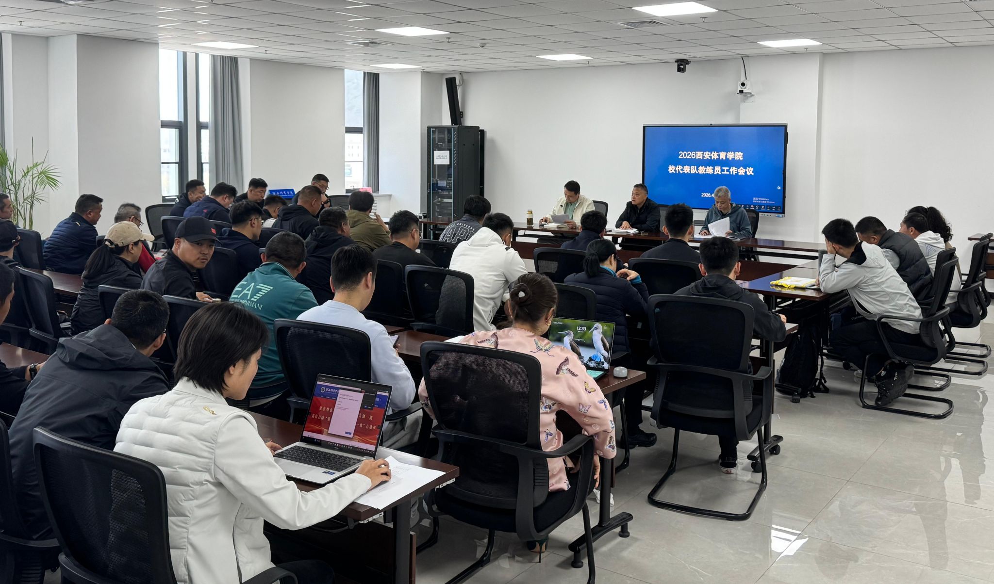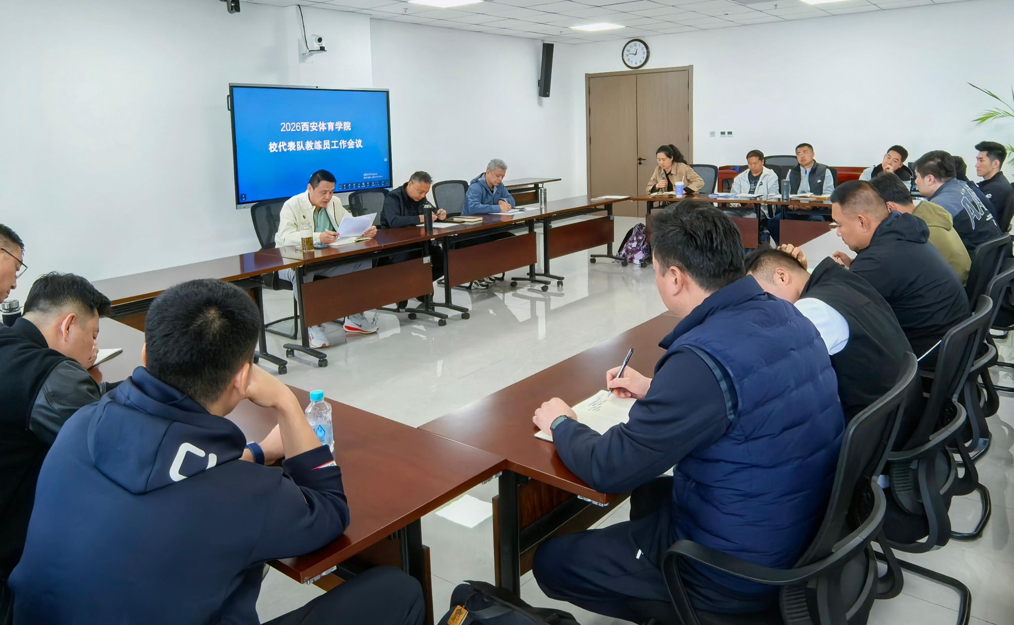 会议首先传达学习党中央、国务院关于北京冬奥会冬残奥会贺电精神及陕西省体育局、学校竞技体育工作相关部署要求,引导全体教练员弘扬中华体育精神、北京冬奥精神与奥林匹克精神,坚定为国为校争光的使命担当,筑牢思想根基、凝聚奋进力量。边伟、郑峰分别解读了学校“十五五”竞技体育发展规划、赛风赛纪与安全责任要求,明确3+3+2+X项目布局、全运会备战、人才培养、平台建设等核心指标,强调严守反兴奋剂规定、强化训练安全底线、深化作风建设,营造风清气正的育人与竞赛环境。