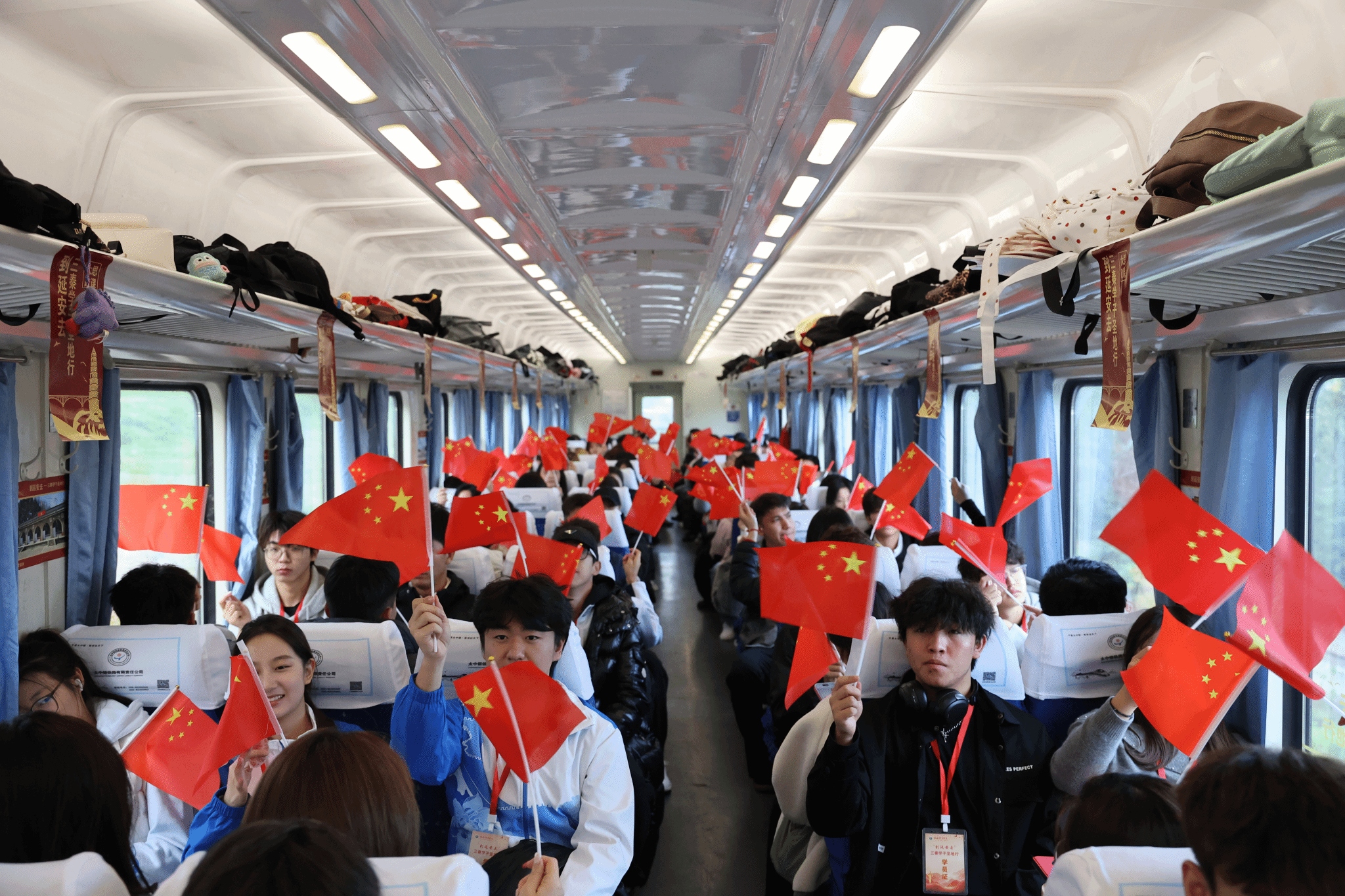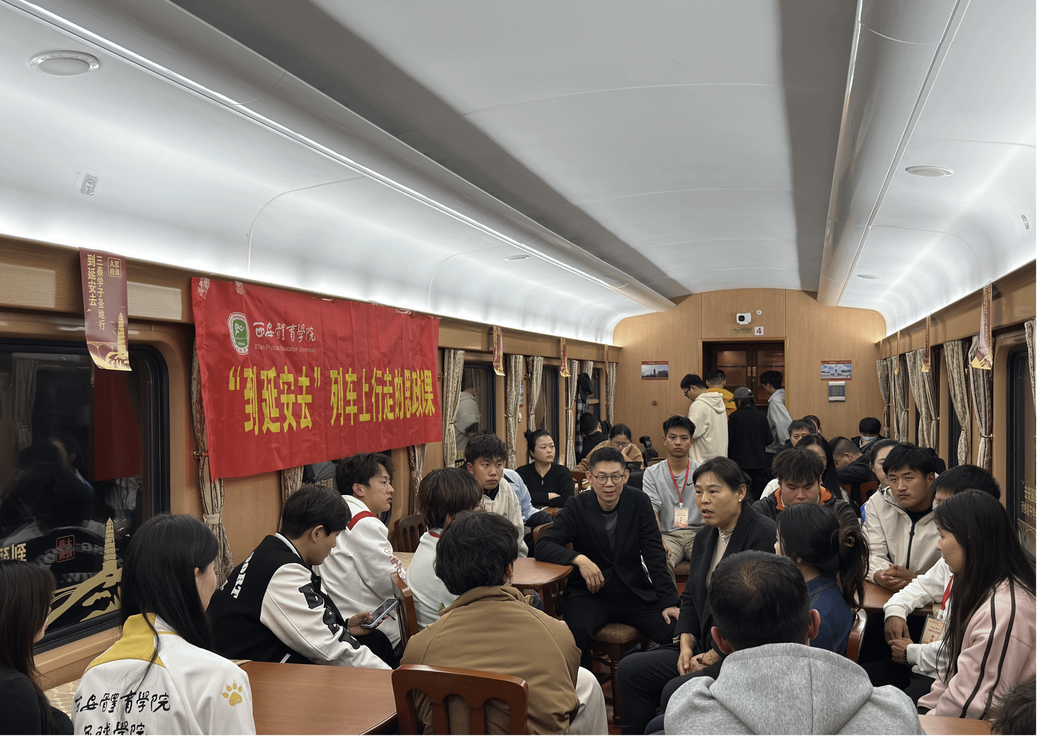 11月1日,载着对革命圣地的无限向往,实践团的列车缓缓驶出西安。为使学子们在列车途中也能收获满满,学校精心策划了“到延安去”列车上行走的思政课、革命歌曲联唱、诵读经典红色篇章、红色知识问答等活动。