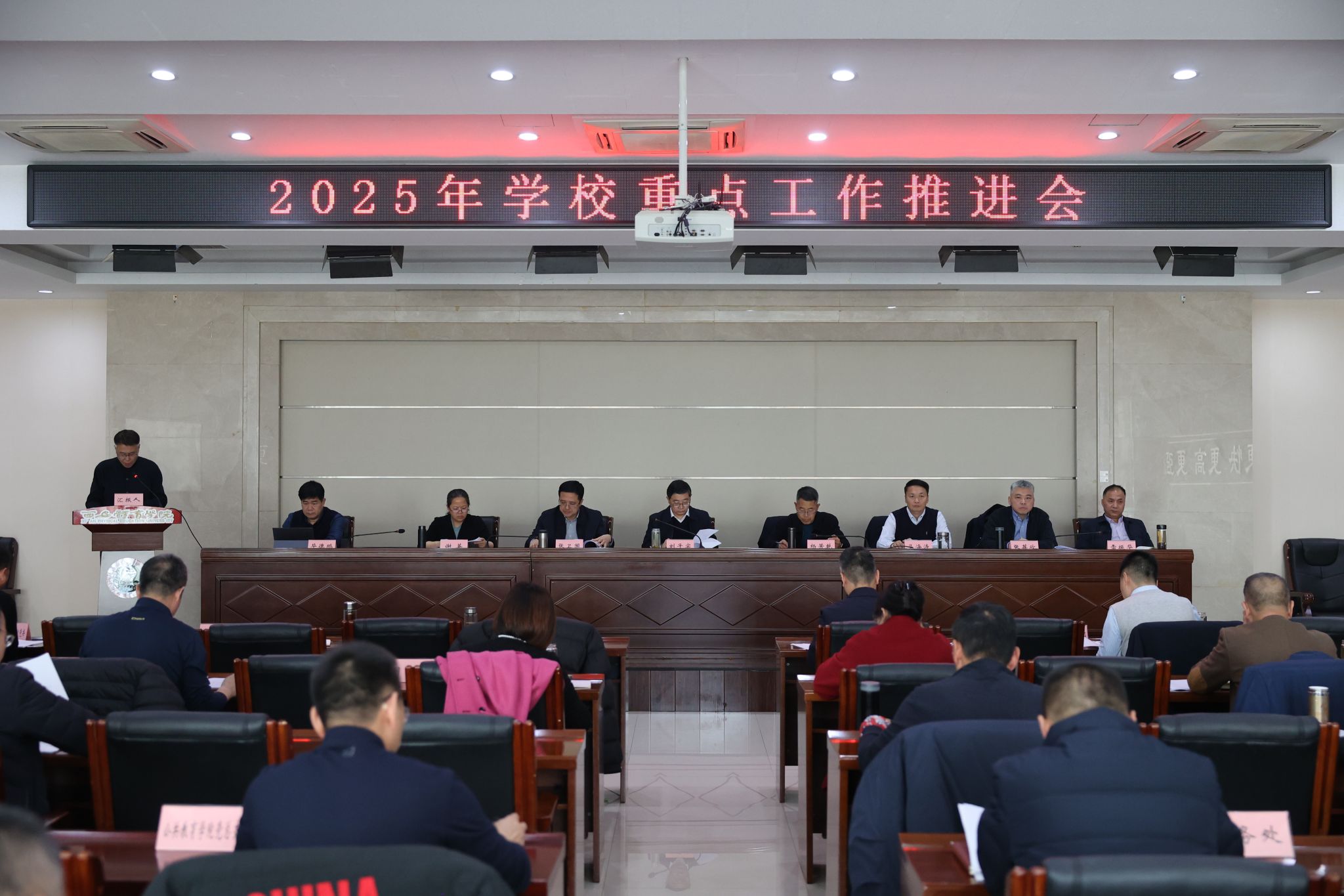 本网讯 为全面复盘2025年度重点工作完成情况,深入分析当前发展形势与存在问题,科学谋划 2026 年工作思路与重点方向,12月16日,党委书记刘子实主持召开2025年学校重点工作推进会。全体校领导、各职能部门负责人和二级学院党政主要负责人参会。