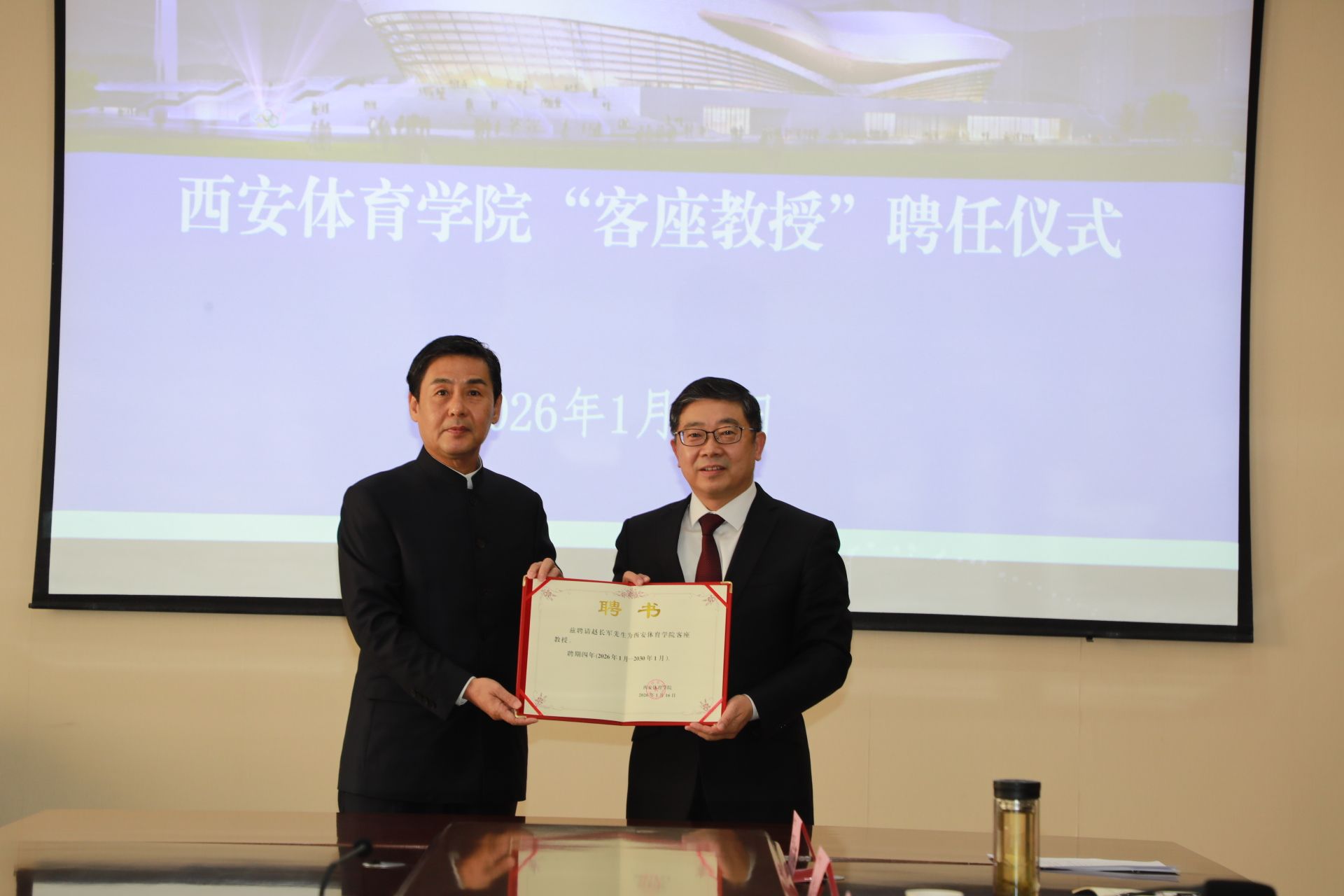 刘子实为赵长军先生颁发聘书并致辞。他简要回顾了学校自1954年成立以来72载的办学历程和为国家培育7万余名优秀体育人才的积极贡献,表示学校将围绕体育强国、教育强国、健康中国战略部署,立足体育高等院校特色,全力推进一流体育大学建设。刘子实指出,赵长军先生深耕竞技、影视、教育三大领域,成就卓著,希望其充分发挥自身优势,传承弘扬民族传统优秀文化,加强学生思想政治教育;同时表示学校将深化与陕西省武术协会的合作,共同培育优秀武术人才,为强国建设贡献力量。