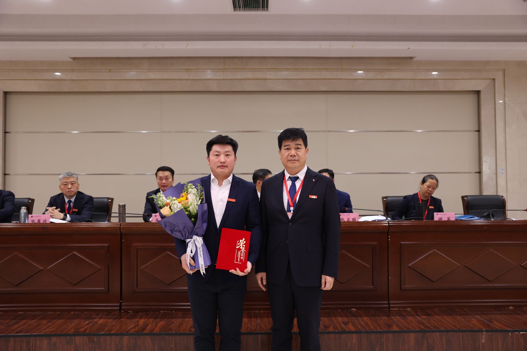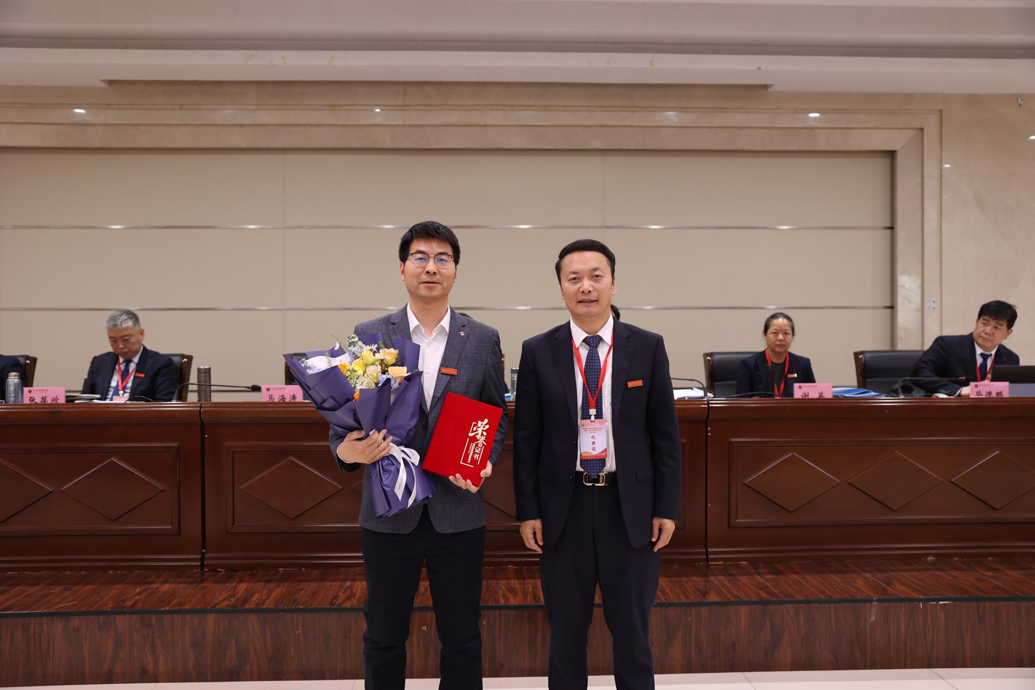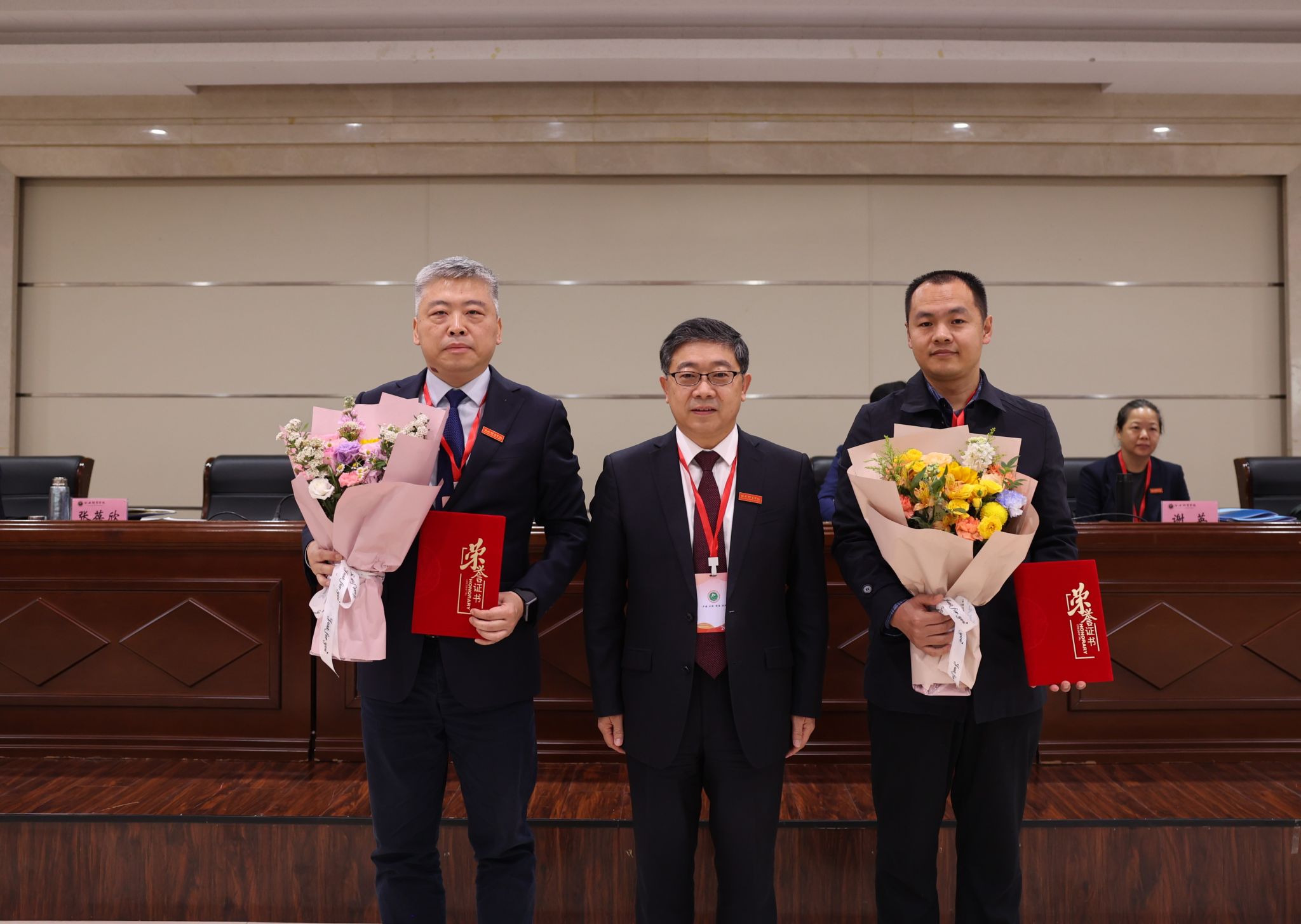 党委书记刘子实为省级人才称号获得者张葆欣、柴王军颁奖