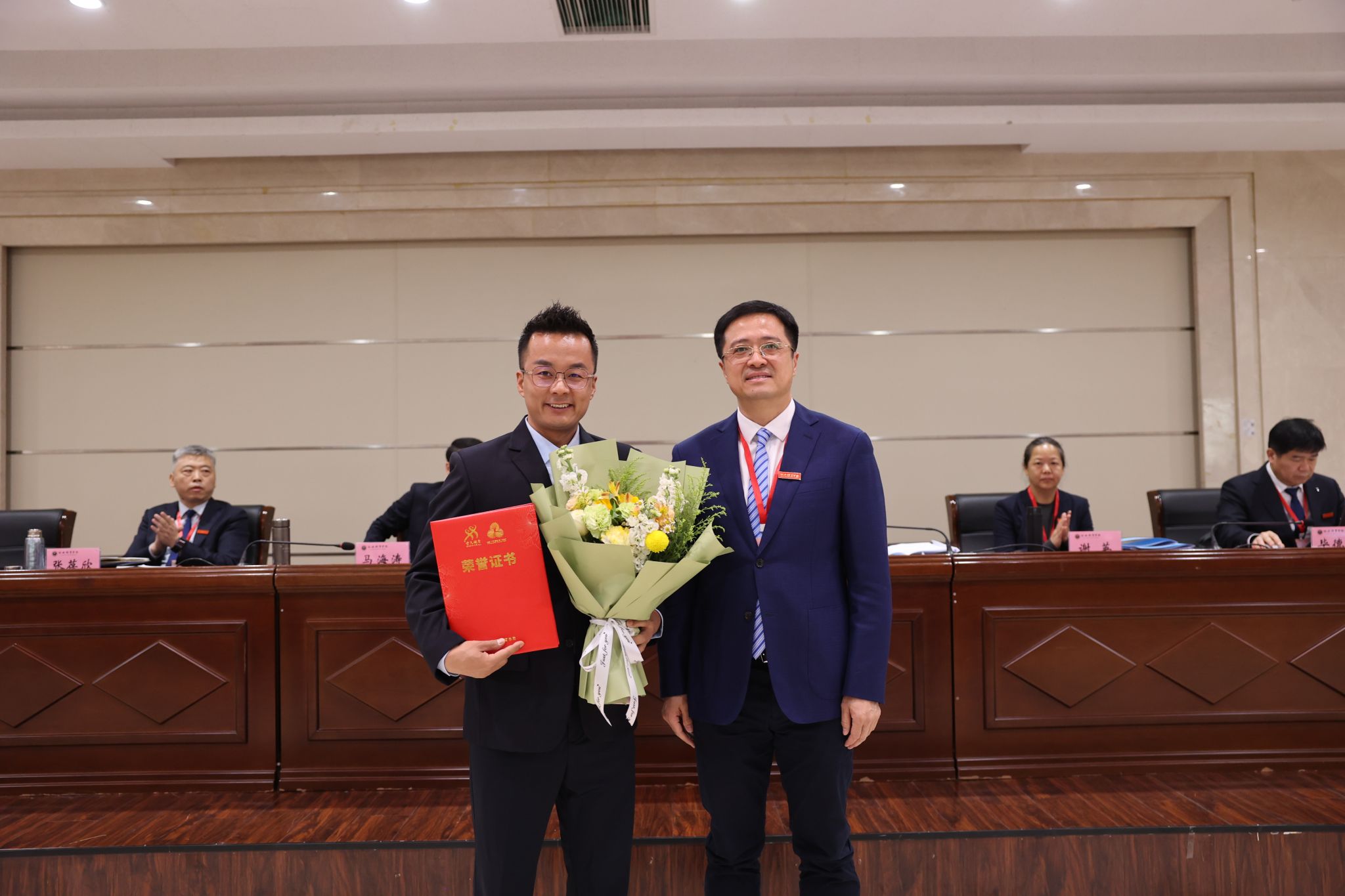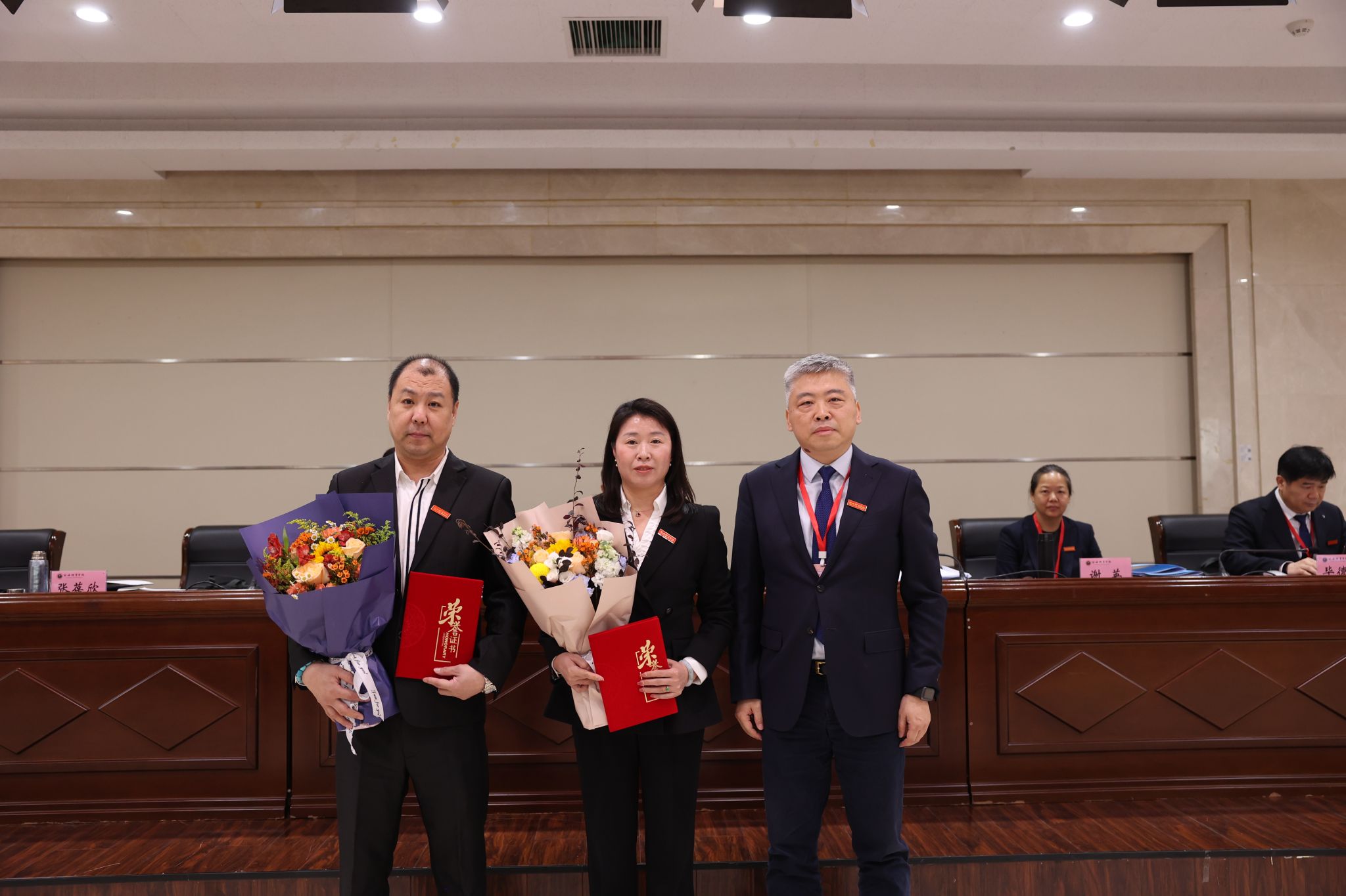 副校长毕德鹏宣读了近期在教学科研训练等方面取得优秀成绩的教职工名单。校领导为获奖者颁发荣誉证书。